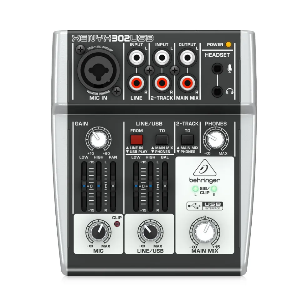 Need a handy little mixer for the boardroom, or one you can grab with your laptop on the way out the door? Or maybe you don’t want to give up valuable desktop real estate to a large mixer? The XENYX 302USB is ideally suited for a small home studio or the on-the-go recording enthusiast. At approximately 4 long and 5 wide (117 x 135 mm), the XENYX 302USB features one of our state-of-the-art, phantom powered XENYX Mic Preamps, an XLR & ¼ combination input and a stereo USB/Line channel – plus a dedicated 2-Track input. And since the XENYX 302USB can be powered directly via your laptop’s USB socket, it’s the perfect portable mixer for podcasting and impromptu recording! As a bonus, the ultra-compact 302USB comes with all the recording and editing software needed to turn your computer system into a complete, high-performance home or portable recording studio.