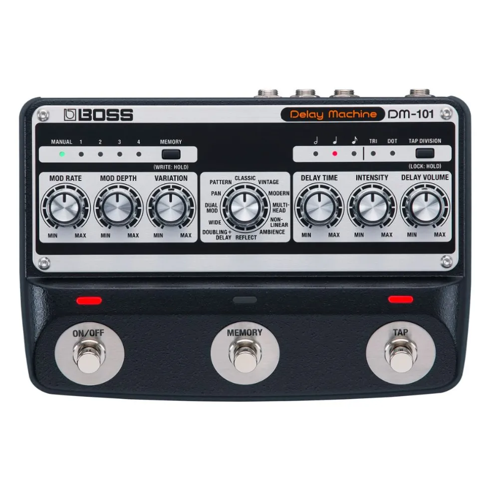 Classic sound meets modern power with the DM-101 Delay Machine, the ultimate analog delay. Driven by eight BBDs under smart CPU control, this inspiring pedal delivers 12 unique modes, stereo operation, and a wide array of tonal colors, all while maintaining 100 percent analog signal processing throughout. And with 127 user memories, tap tempo, carryover, MIDI, and more, the DM-101 brings you the features and versatility of an advanced digital pedal—but with the vibrant, characterful sound that’s only possible with authentic analog BBD circuitry.