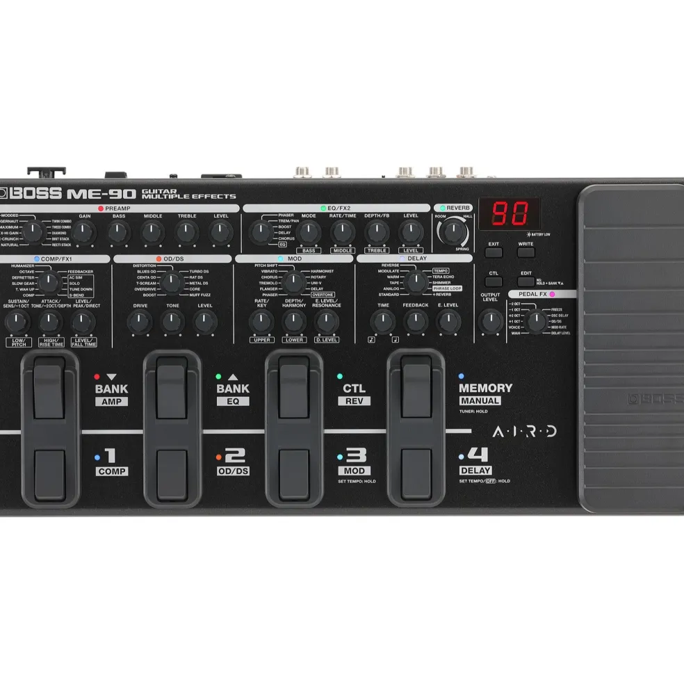 The BOSS ME series has been a favorite of performing guitarists for over three decades, combining multi-effects power with intuitive hands-on control for crafting tones in seconds. The ME-90 is the most advanced ME model to date, offering exceptional audio quality with 24-bit AD/DA and 32-bit floating point processing, flagship-grade AIRD amp models, IR loading, an effects loop, and more. Compact, battery-powered, and filled with premium BOSS tones, this versatile all-in-one processor makes it easy to build customized sound setups for every playing situation.