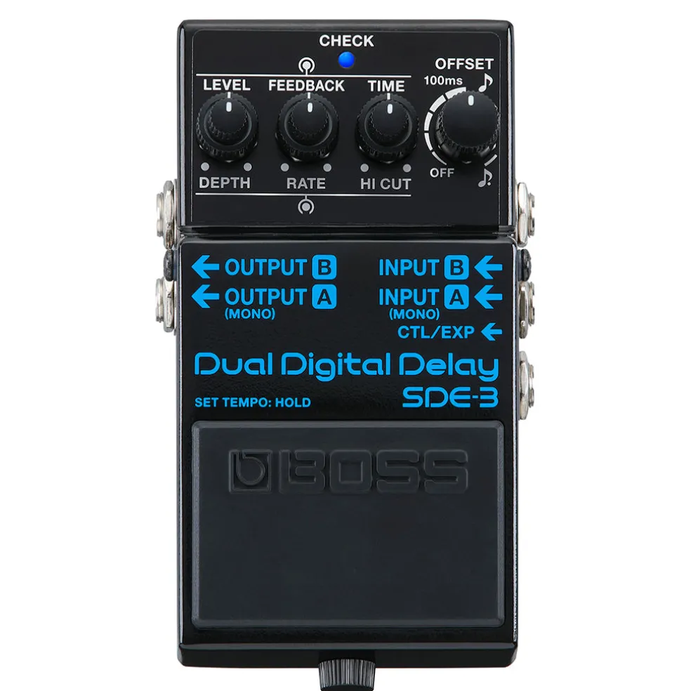 The SDE-3 fuses vintage digital character and wide-ranging versatility into one unique and inspiring BOSS compact pedal. Experience the genuine sound and core features of the Roland SDE-3000, an iconic ’80s-era rackmount delay favored by some of the most influential guitarists of all time. Flow into any creative setup with a slate of modern features. And twist the powerful Offset control to explore an array of colorful dual-delay textures.