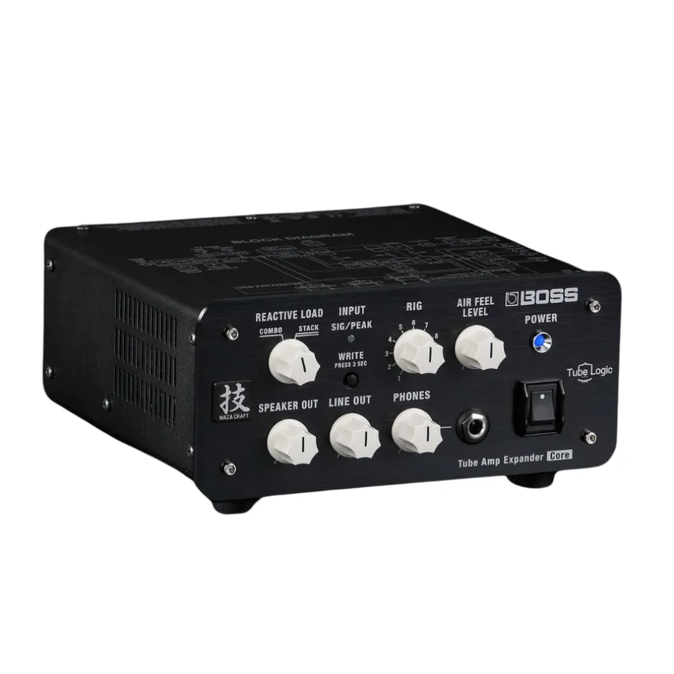 The WAZA Tube Amp Expander Core is a professional recording solution for capturing tube amp tones with exceptional quality. Our Tube Logic approach and reactive load design retain your amp’s natural feel and touch response, while premium cab emulation and studio processing make it simple to craft high-impact direct sounds. Creative options include a helpful Mix Assist tool that ensures tracks fit perfectly within every mix, plus a unique Air Feel feature that authentically recreates “amp-in-room” sound with advanced spatial technology. And with the integrated 30-watt reactive drive power amp and your favorite cab, you can enjoy “sweet spot” amp tones at home-friendly levels.