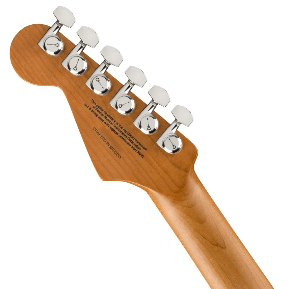 - 12”-16” compound radius ebony fingerboard with 24 jumbo frets and pearloid dot inlays