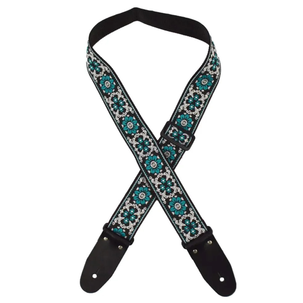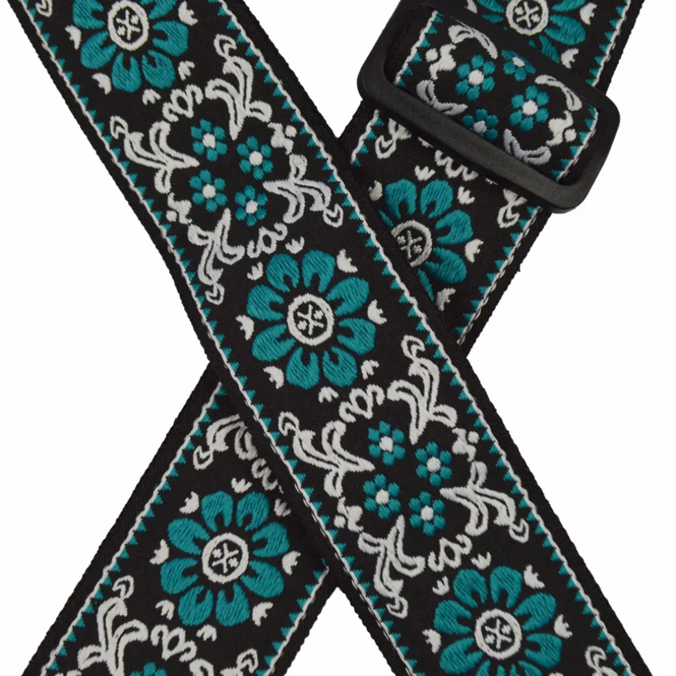Aqua Flower jacquard sewn onto 50mm webbing.
