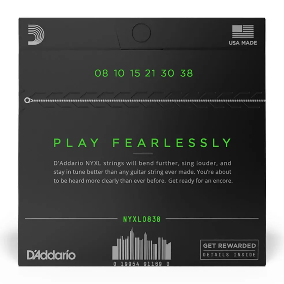 NYXL0838 offers the lightest possible tension and greatest ease of play. The high carbon steel used in NYXL strings offers higher break strength, enhanced tuning stability, and accentuated mid-range frequency response.