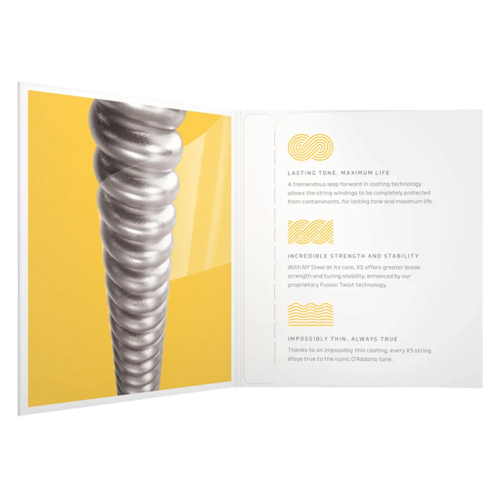 XS Nickel coated electric guitar strings provide the longest life of any D’Addario electric guitar string. Coated with our groundbreaking XS coating, these premium electric strings attain maximum life and a smooth, fast feel without dampening their outstanding tone. Constructed with a NY Steel core, reformulated nickel-plated steel wrap wire, and Fusion Twist technology, XS Nickel strings boast superior strength and tuning stability, plus richer harmonics, greater clarity, and remarkable definition with every sweep, slide, and bend. This 09-46 Super Light Top/Reg Bottom gauge set has more low-end tone than Super Light, while staying flexible for bends.