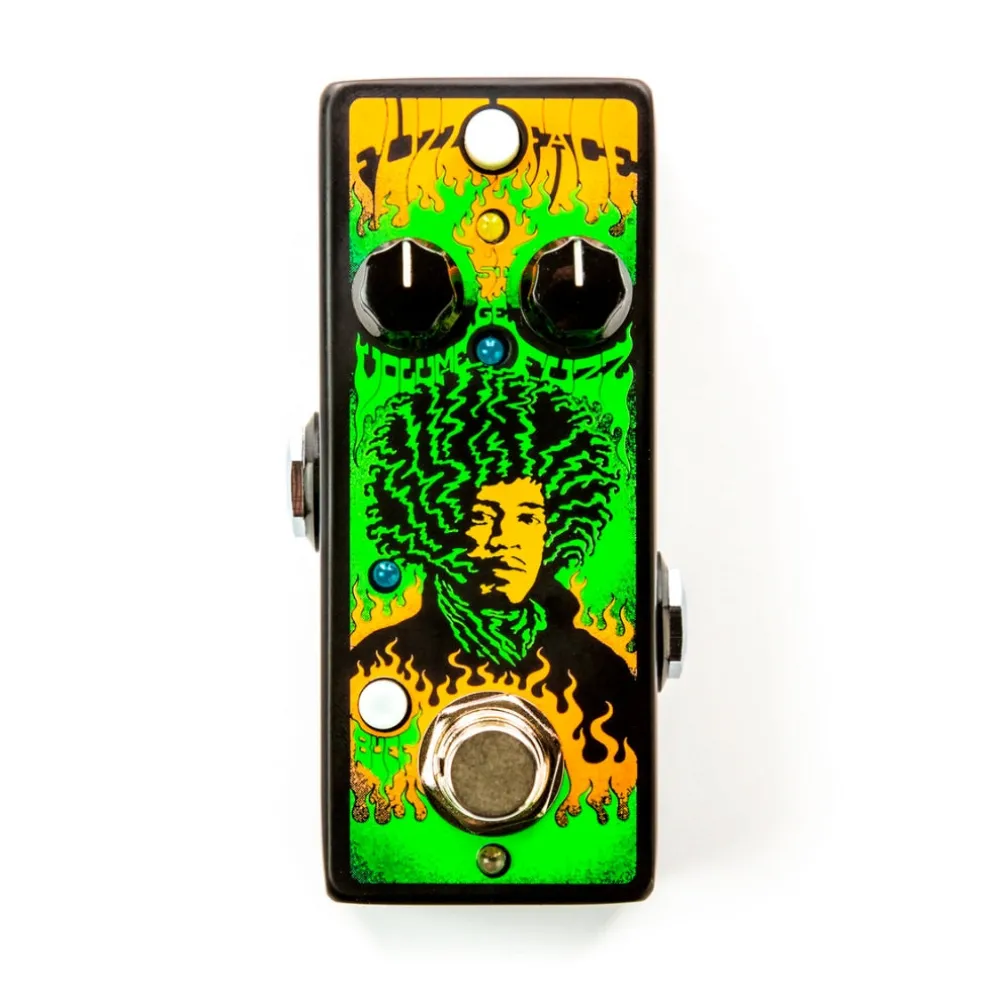 This special edition of the Fuzz Face Distortion pays tribute to the legendary Jimi Hendrix with a custom finish featuring prolific and celebrated rock artist John Van Hamersveld’s famous 1968 Shrine Auditorium concert poster art remixed by Simon Berndt of One Horse Town Illustration . Licks of green and blue flame evoke the fiery passion and metaphysical musical experience that Jimi Hendrix gave to the world while psychedelic lettering captures the vibe of the era.