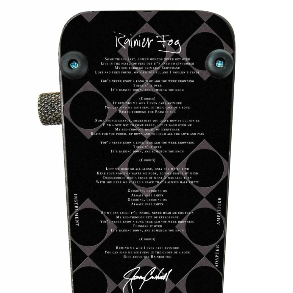 The super popular Jerry Cantrell Cry Baby Wah just got a makeover, and it’s all about going back to the riff master’s Seattle roots. The distressed black finish recalls the visual vibes of the Alice in Chains record Rainier Fog while the custom treadle design is based on Jerry’s own tribal orca tattoo, created by Coast Salish artist Joe Wilson. As a sweet final touch, the bottom plate features the full lyrics to the song “Rainier Fog” from the aforementioned album.