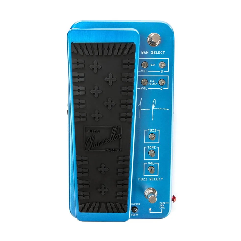 The Justin Chancellor Cry Baby Wah is a multi-tool of sonic craftsmanship, combining three separate effects into a single pedal: the fluid expressiveness of a custom midrange filter, the bright aggression of a custom wah circuit, and the chainsaw grind of a vintage fuzz. It’s the perfect complement to bass player Justin Chancellor’s multi-dimensional role in the band Tool. Whether opening up soundscapes with chords and harmonics or syncing up with guitarist Adam Jones to perform arresting single-note unison runs, Justin goes above and beyond the traditional boundaries of his instrument to help compose the band’s multi-layered tunes. He is, without a doubt, one of the modern pioneer users of effects on bass, and he keeps a carefully configured pedalboard at his disposal for crafting tones and exploring sounds. This custom Cry Baby Wah combines some of his favorite ways to do just that—filter, wah, and fuzz.