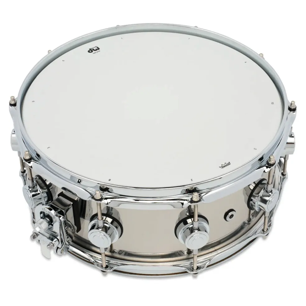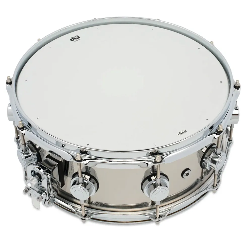 The DW Collector’s Series is a pinnacle in custom-made drums. The Collector’s Series offers quality, elegance, and performance fit for the touring or recording professional and the passionate player or collector. This DW Collector’s Series’ Stainless Steel snare drum offers a lighter weight rolled shell and delivers the classic versatility of a stainless-steel snare with fat attack and musical overtones. This snare is also fitted with our famed MAG throw-off, five-position buttplate, True-Pitch tension rods, chrome-plated triple-flanged TrueHoops, and DW Heads by Remo U.S.A. *