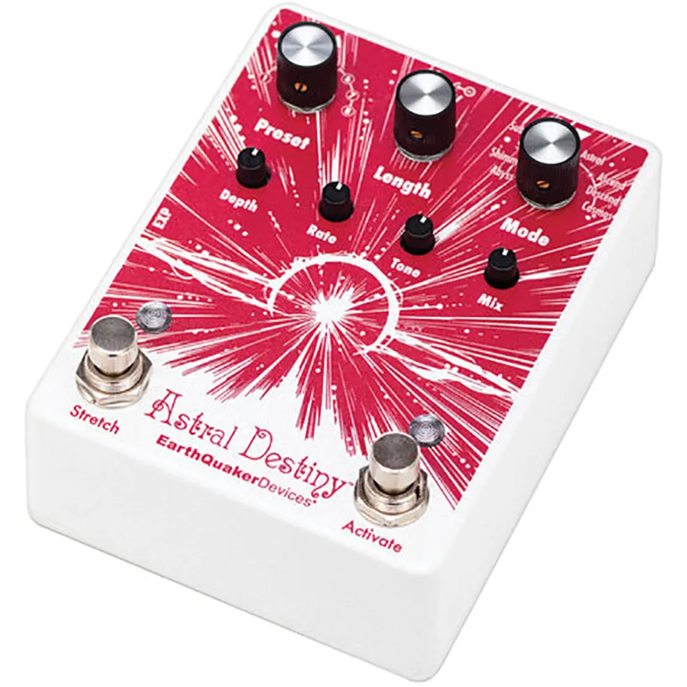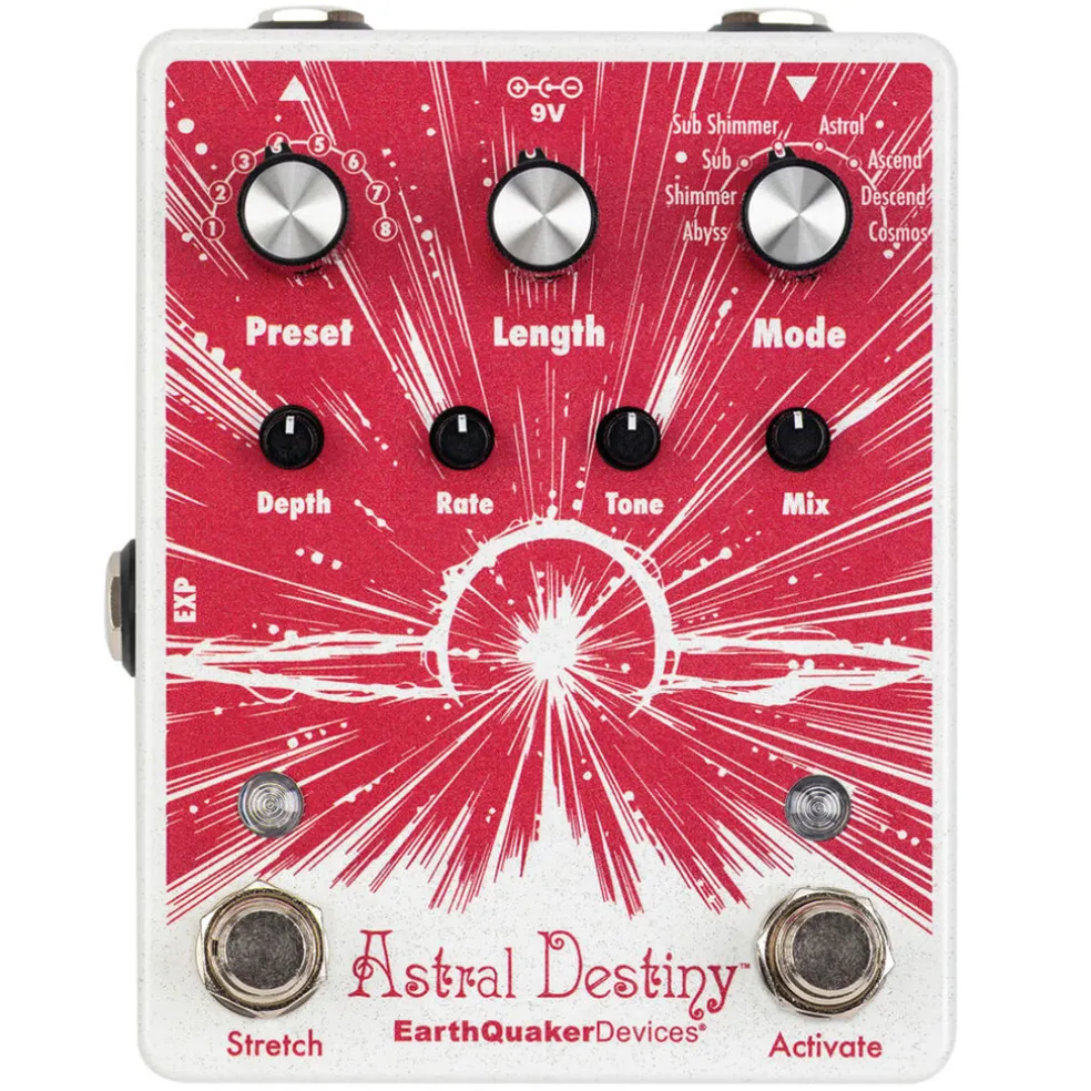 The Astral Destiny is a compact and powerful modulated octave reverb pedal that features 8 reverb modes with 8 editable presets, assignable expression control, tails for natural reverb decay when the effect is bypassed and a super cool stretch feature that doubles the length of the reverb while adding an adjustable pitch bending effect.