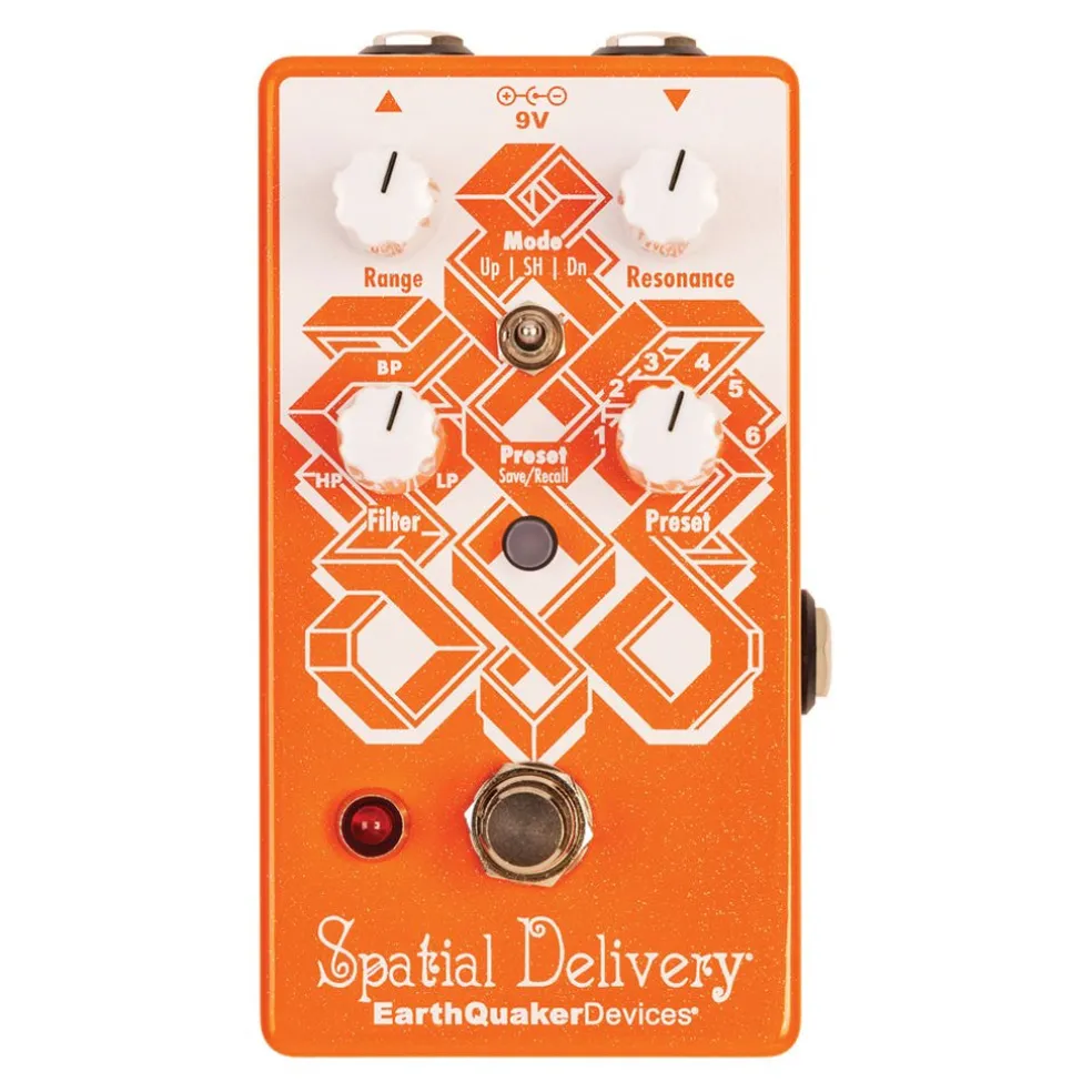 The Spatial Delivery is an oddball, a voltage controlled envelope filter that allows you to step outside the universe of funk while reinforcing your secret love affair with auto-wah. This baby has three modes with the switchable Up Sweep, Down Sweep, and Sample & Hold functions, along with Range, Resonance and Filter controls. Get some wild filter sweeps with the Up and Down modes and adjust the Range to control the sensitivity and reaction time of the envelope, which alters the width of the frequency sweep. Reign in the controls a bit, add your favorite overdrive/fuzz after the Spatial Delivery and you’ve got a real nice resonant, cut-through-the-mix lead tone.