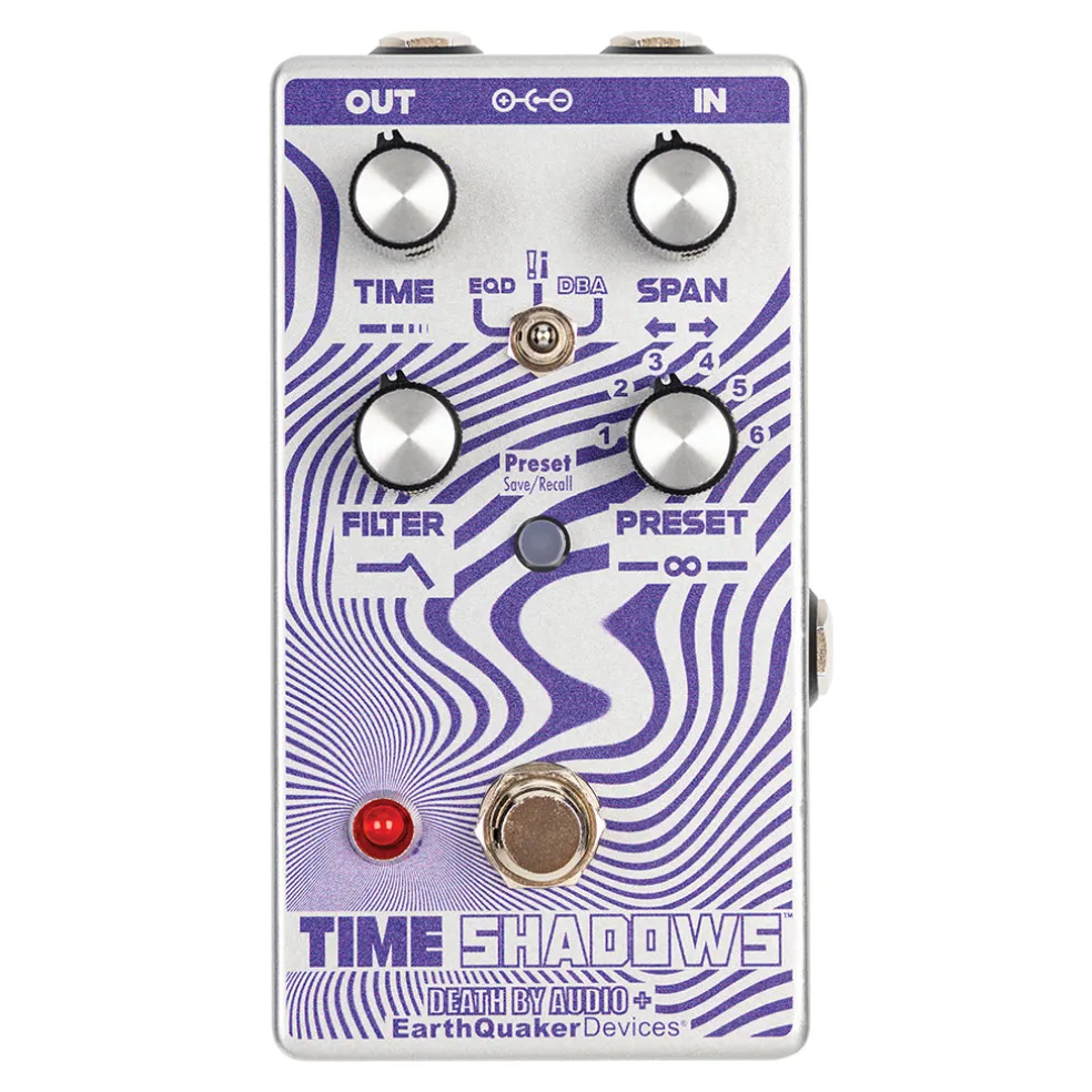 This joint collaboration between EarthQuaker Devices and Death By Audio is a major update to the original Time Shadows that was released in 2020 and limited to 1000 units! Time Shadows now features 3 modes, user assignable expression control and 6 preset slots to save and recall your favorite settings. The EQD Mode is an envelope controlled sub-octave filter delay, the ALL NEW !¡ Mode is a dual delay where each repeat simultaneously shifts up and down with each regeneration, and the DBA Mode is a multi-delay regenerating filter. All three sounds are wildly different from each