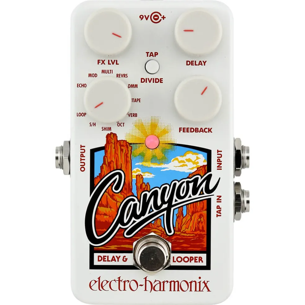 Packed with more power than pedals taking up more real estate, the compact Canyon features a collection of awe-inspiring effects. From pristine digital delay to warm and warbly tape echo, reverse and modulated delays, cascading octave delay and shimmer… even an exquisite Deluxe Memory Man emulation. There are ten different effects in all plus a fully featured looper. Internal or external Tap Tempo with tap divide and a chasm full of intuitive secondary knob controls deliver a truly grand experience.