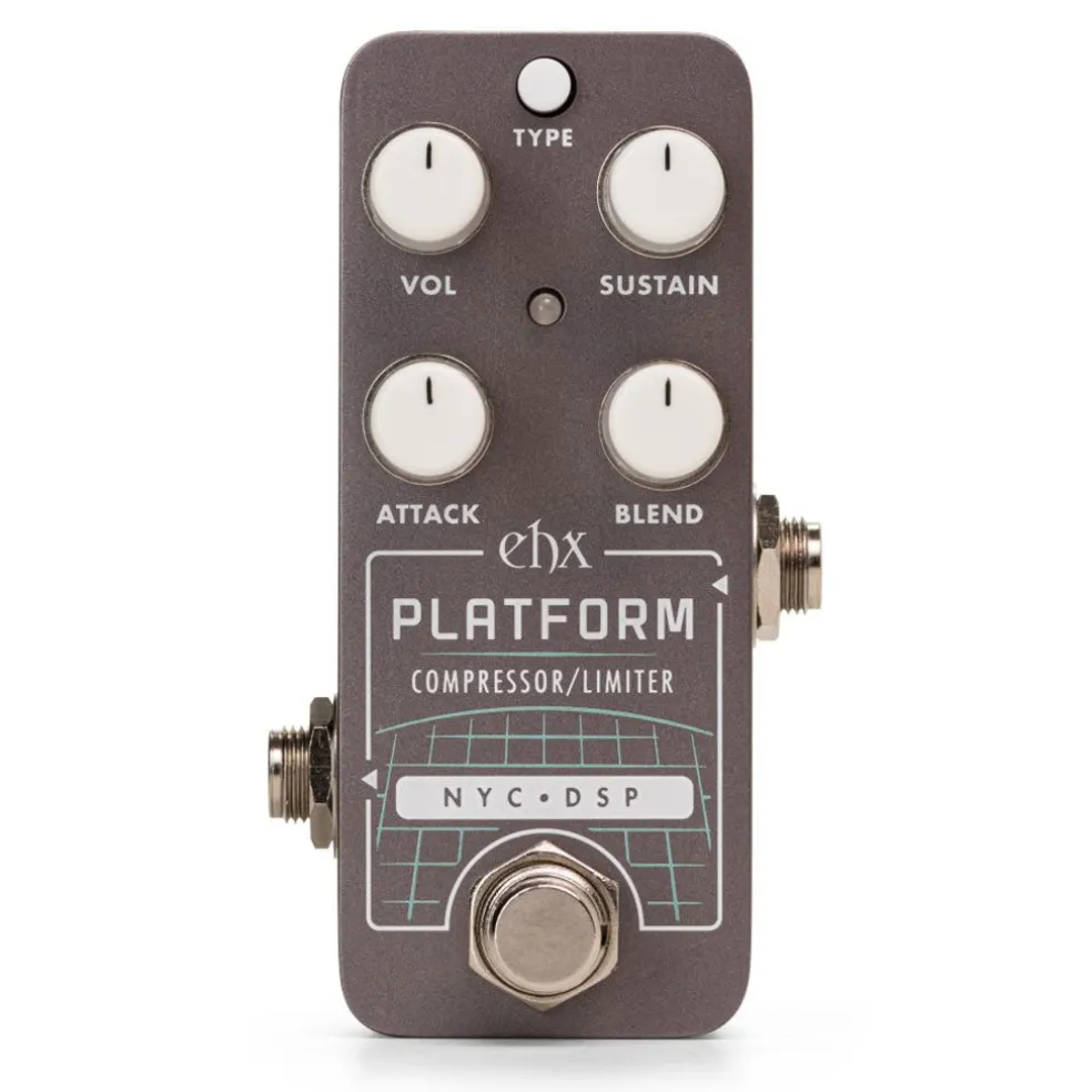 The EHX Pico Platform Compressor / Limiter is a powerful and versatile studio-style compressor enclosed in a pico-sized package. Borrowing from the original, the Pico Platform condenses the comp section of the full-sized Stereo Platform for those looking to fit smooth studio compression onto any pedalboard. Packed with 2 modes and Hard/Sort Knee compression options, it is a perfect fit for sculpting your dynamics with professional precision.