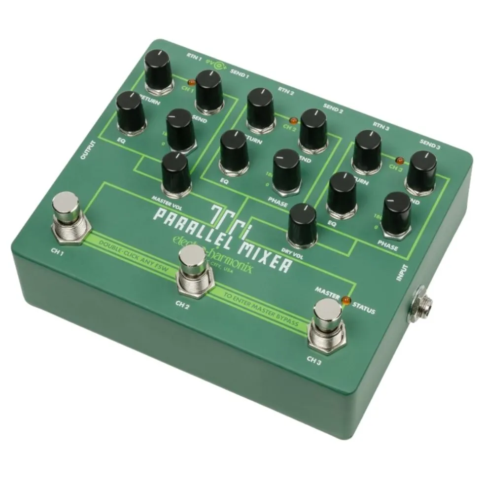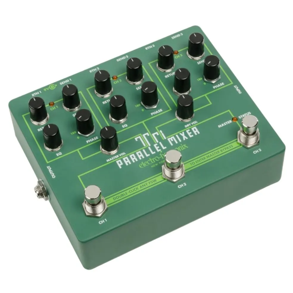 The EHX Tri Parallel Mixer is a powerful effects creation and mixing hub offering three separate FX loops with flexible controls allow for multiple configurations.