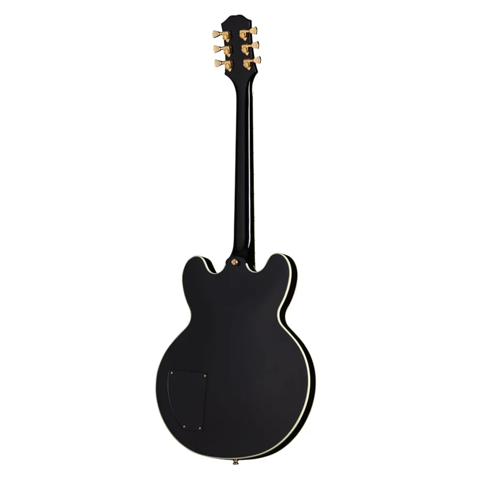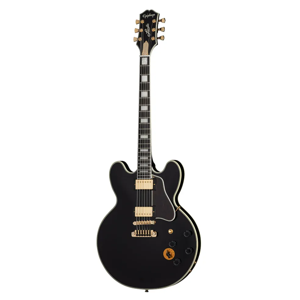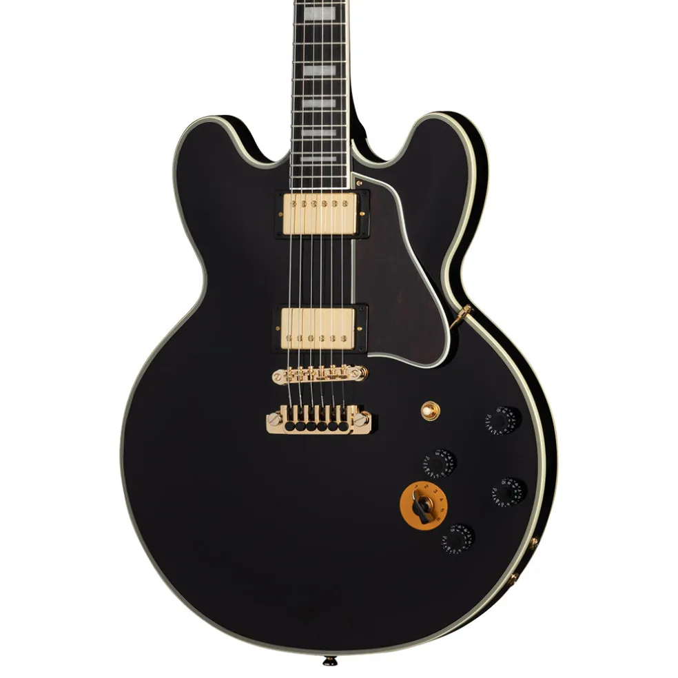 Based on the famously named guitars of blues legend B.B. King, the Epiphone B.B. King Lucille was inspired by the various Gibson ES™ models he played over the years – all of which were named Lucille. Standout features that make this Lucille such a stunning guitar and loving tribute include gold hardware, Grover® Rotomatic® tuners, a Graph Tech® nut, ebony fretboard with pearloid block inlays, a brass truss rod cover with B.B. King’s name engraved on it, mother of pearl Lucille inlay on the headstock face, multi-ply binding on the body and headstock, a TP-6 tailpiece with fine tuners, and a semi-hollow body with a maple center block to reduce feedback.