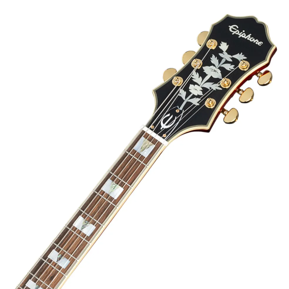 For over 70 years, the classic Epiphone Broadway has been considered the ultimate hollow body jazz guitar, but it’s also excellent for roots rock and other genres. Now, this legacy-rich instrument has returned with beautiful new finishes and comes equipped with Alnico Classic PRO™ humbuckers™, a vintage-style gold Frequensator™ Split Trapeze tailpiece, and premium tuners. Gold hardware and other fine appointments like mother-of pearl and abalone fretboard and headstock inlays add to the subdued class of this versatile archtop.