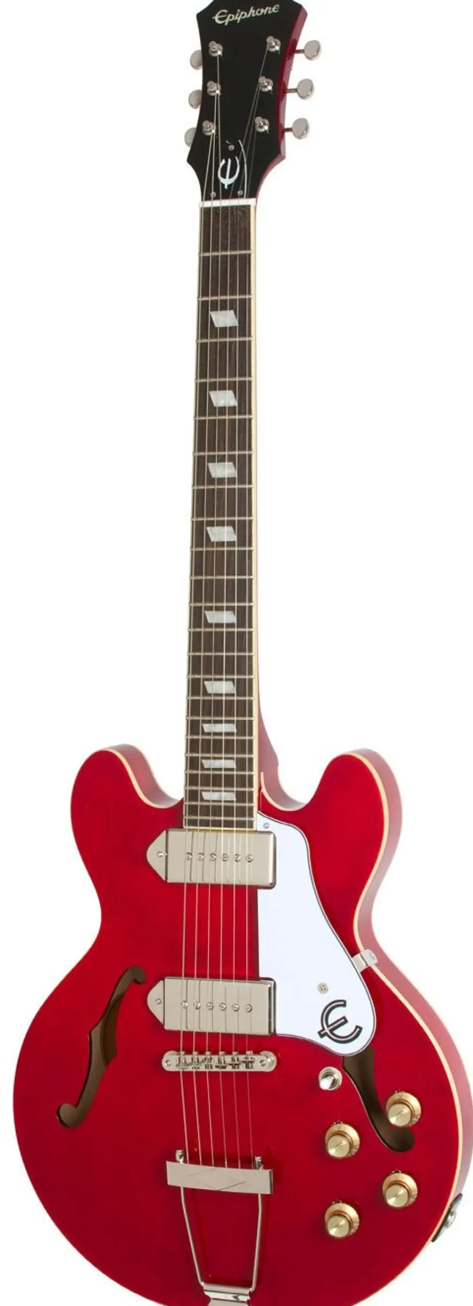 Epiphone presents the Casino Coupe, the iconic hollowbody Casino reborn in a smaller ES-339 body size. Featuring new Epiphone Dogear P-90T Classicâ„¢ single coil pickups, a Mahogany neck, and vintage styled machine heads. Now available in Natural, Vintage Sunburst, and new Turquoise color finishes.