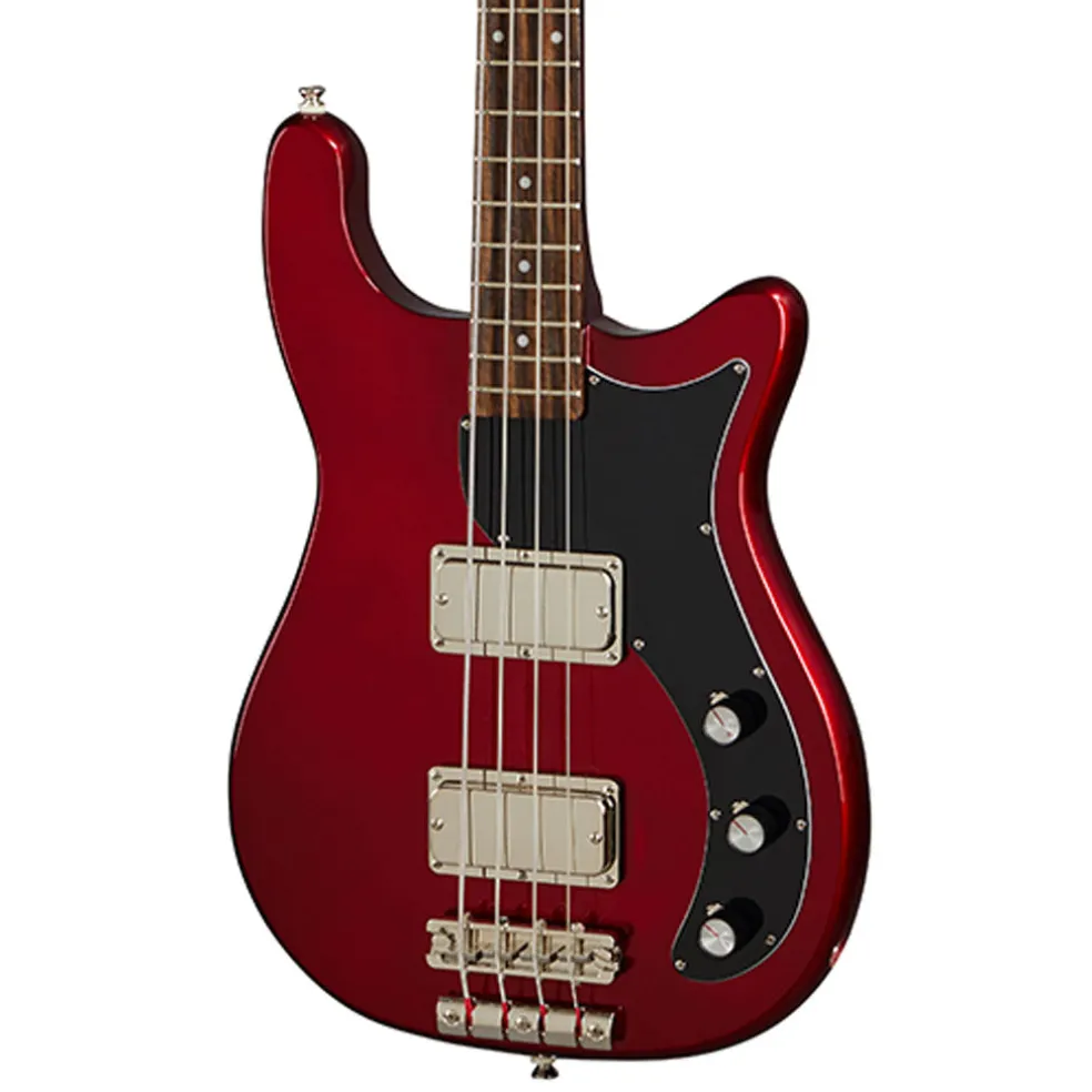 Ever since it was first introduced in 1963 the Epiphone Embassy Bass has been a player favorite, and now its back and better than ever. Featuring an asymmetrical solid mahogany double-cutaway body, a 34 scale mahogany neck capped with an Indian laurel fretboard with 20 medium jumbo frets, a 2 x 2 headstock design for improved balance, and a pair of powerful ProBuckerâ„¢ 760 humbucking pickups, along with master volume and tone controls, as well as a pickup blend knob for outstanding tonal versatility.