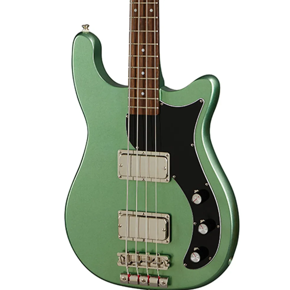 Ever since it was first introduced in 1963 the Epiphone Embassy Bass has been a player favorite, and now its back and better than ever. Featuring an asymmetrical solid mahogany double-cutaway body, a 34 scale mahogany neck capped with an Indian laurel fretboard with 20 medium jumbo frets, a 2 x 2 headstock design for improved balance, and a pair of powerful ProBuckerâ„¢ 760 humbucking pickups, along with master volume and tone controls, as well as a pickup blend knob for outstanding tonal versatility.