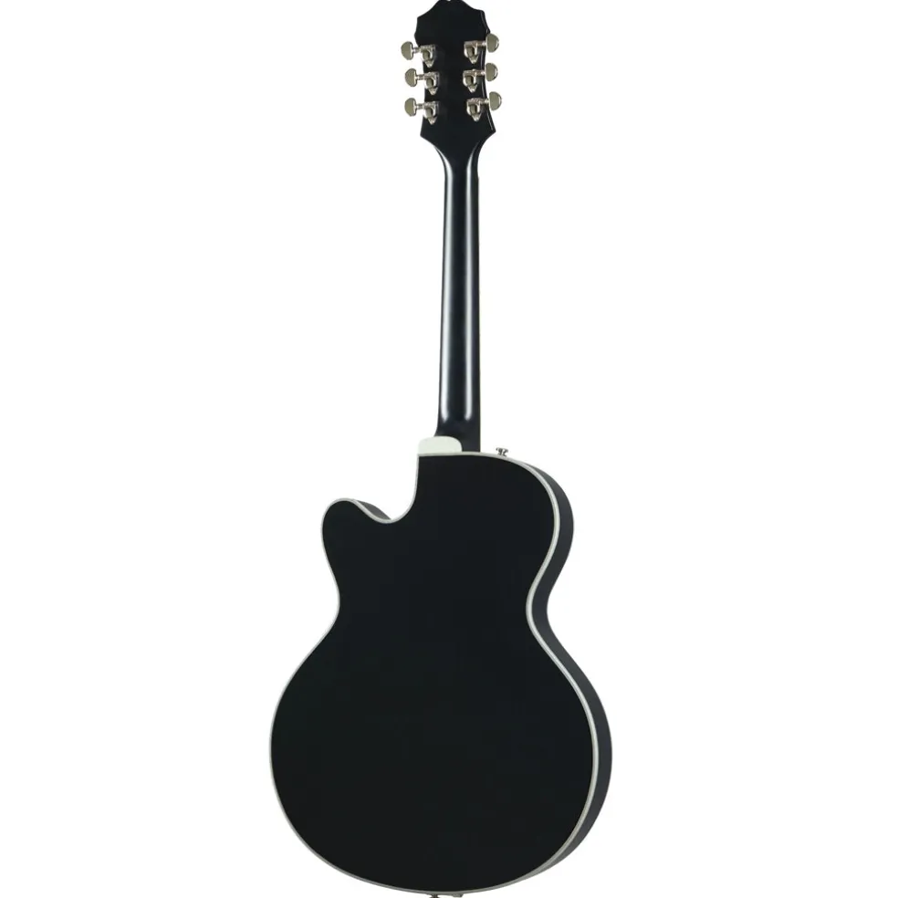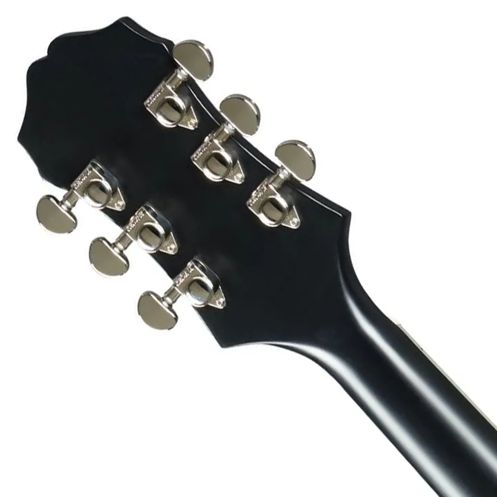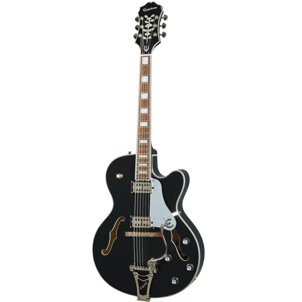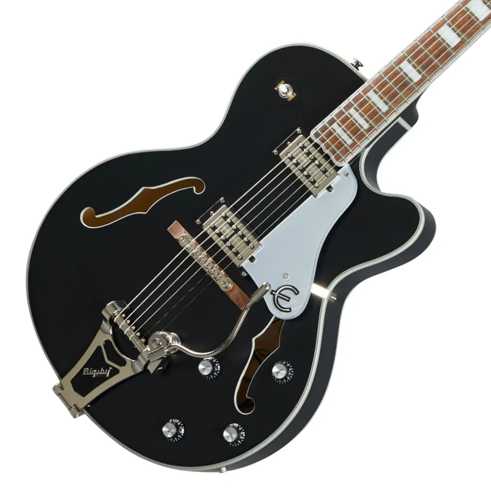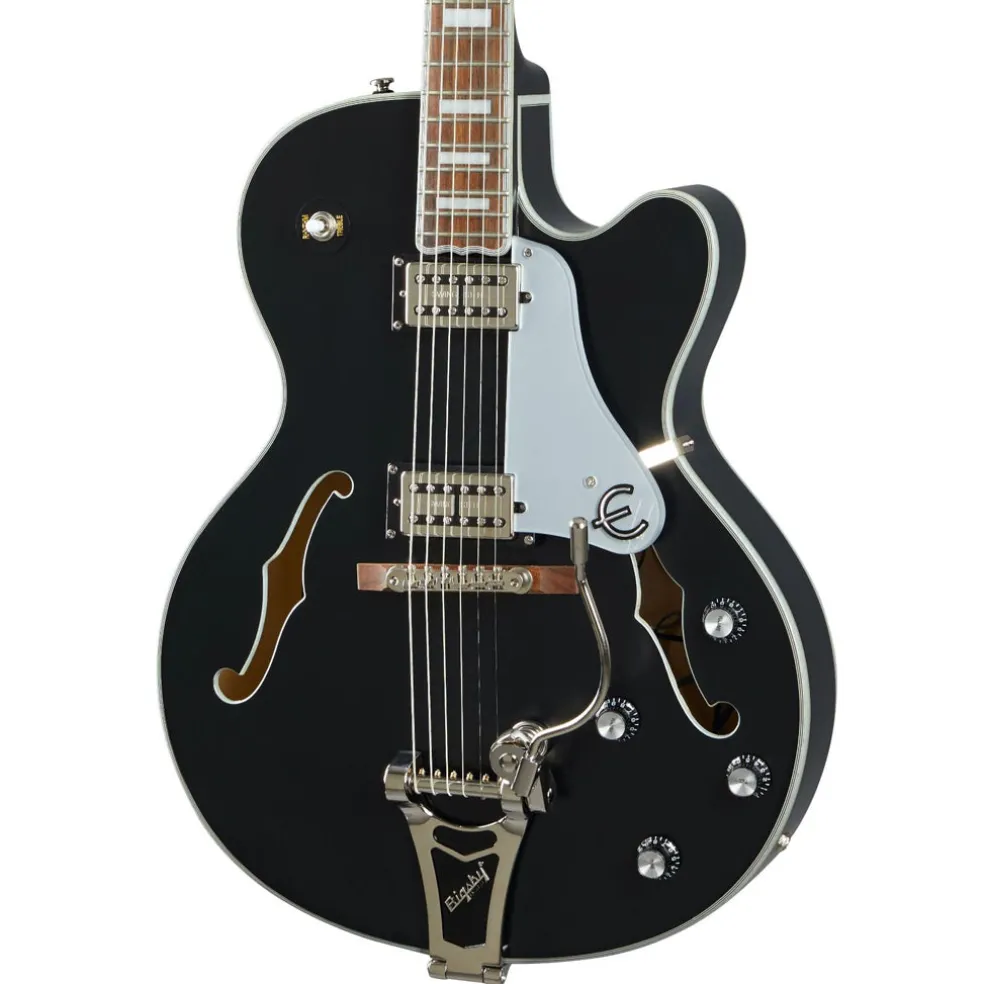 This hollowbody has a 5-ply layered maple body, mahogany neck with a comfortable and fast-playing SlimTaper™ profile, Indian laurel fretboard with block inlays, mother of pearl Epiphone and Tree of Life inlays on the large Clipped Dove Wing headstock, Grover® Rotomatic® tuning machines, and two Epiphone SwingBucker™ pickups, each with a dedicated volume and tone control. Push/pull switches are built into each volume control to provide series/parallel switching for the pickups, and along with the 3-way toggle pickup selector switch, give you a broad selection of tonal options. The LockTone™ Tune-O-Matic™ bridge is mounted on a pinned wooden base so it wont move out of place when you use the licensed Bigsby® vibrato with wire handle.