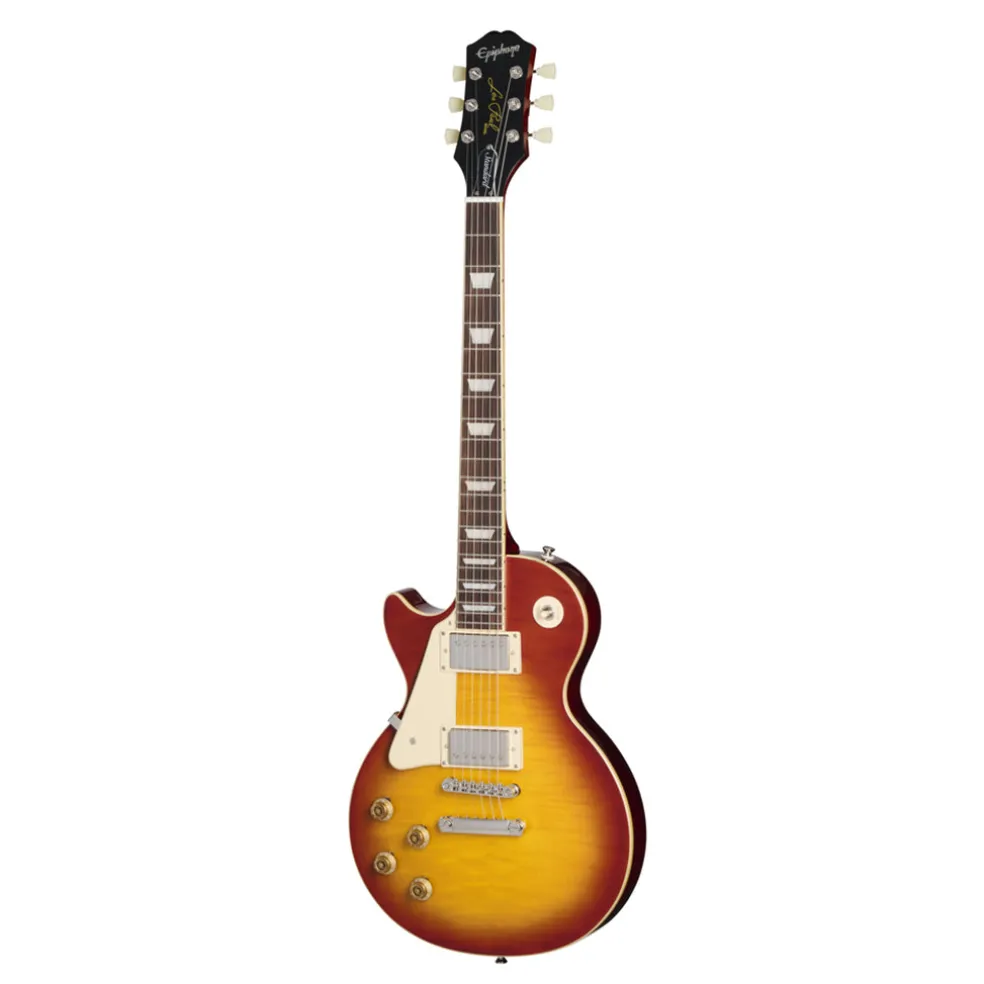 This guitar is crafted with a mahogany body, maple cap with AAA flame maple veneer, bound ’59 Rounded Medium C-shaped mahogany neck with long neck tenon, laurel fretboard with classic trapezoid inlays, Epiphone’s Vintage Deluxe tuners, a pair of critically acclaimed Epiphone Probucker™ humbuckers™, and gold Top Hat knobs with dial pointers. This Epiphone Inspired by Gibson Original model also has the Kalamazoo headstock, Graph Tech® nut, era-appropriate wiring, and CTS® pots. A premium gig bag is also included.