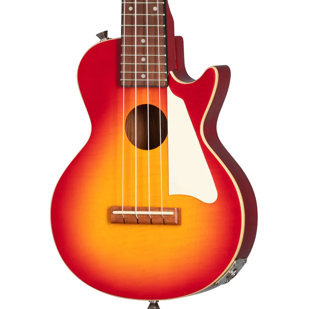 Long known for its history of making great Les Paulâ„¢ guitars, Epiphone presents the Les Paul Concert Ukulele. Like a traditional Les Paul Standard, the Les Paul Concert Ukulele features a mahogany body combined with a maple top with a AAA grade flame maple top veneer for great tone and a great look. Featuring a mahogany neck with a SlimTaperâ„¢ D profile shape with 19 frets, a 15 scale length, and a 16 fingerboard radius. A gig bag is included. And best of all, the Les Paul Concert Ukulele features a piezo pickup so you can plug in anywhere!