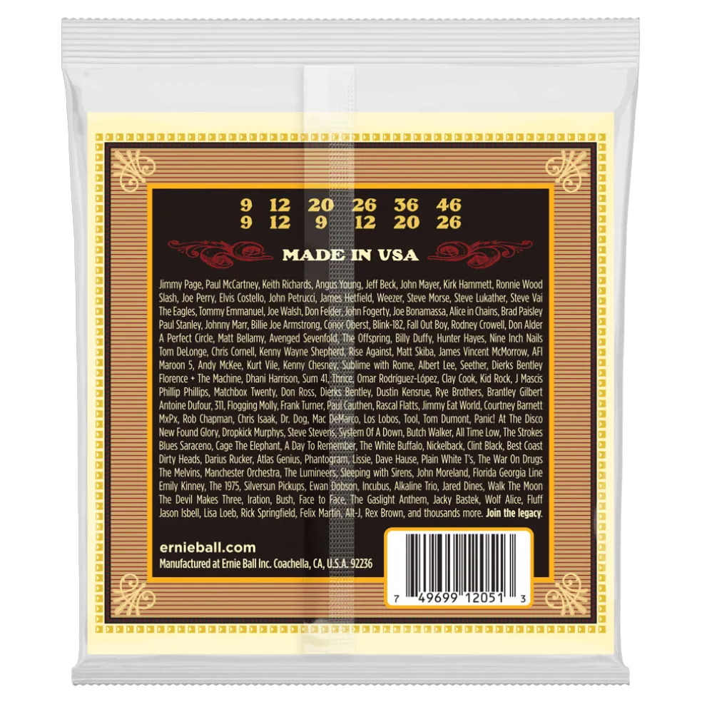 Ernie Ball Earthwood Silk and Steel Soft 80/20 Bronze acoustic guitar strings are made with an 80/20 bronze alloy wrap, along with a layer of silk between the wrap and steel core. The silk produces a more mellow sound and makes the string feel more comfortable while reducing finger noise. Gauges .009 .009, .012 .012, .020w .009, .026 .012, .036 .020p, .046 .026.