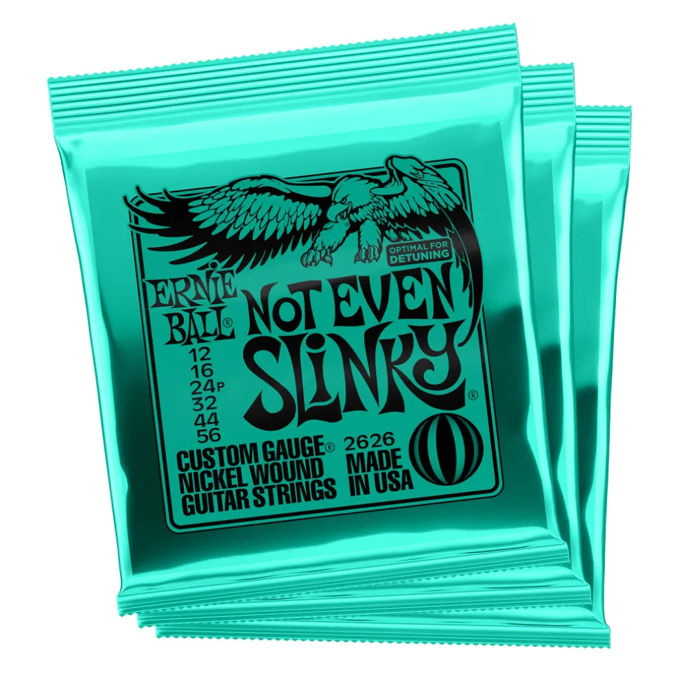 Ernie Ball Not Even Slinky Nickel Wound Electric Guitar Strings are made from nickel plated steel wire wrapped around tin plated hex shaped steel core wire. The plain strings are made of specially tempered tin plated high carbon steel producing a well balanced tone for your guitar.
