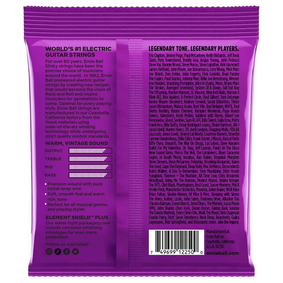 Ernie Ball Slinky Classic Rock N Roll Pure Nickel wrap electric guitar strings are made from pure nickel wire wrapped around tin plated hex shaped steel core wire, these guitar strings produce a warm rich tone with that signature Slinky feel.