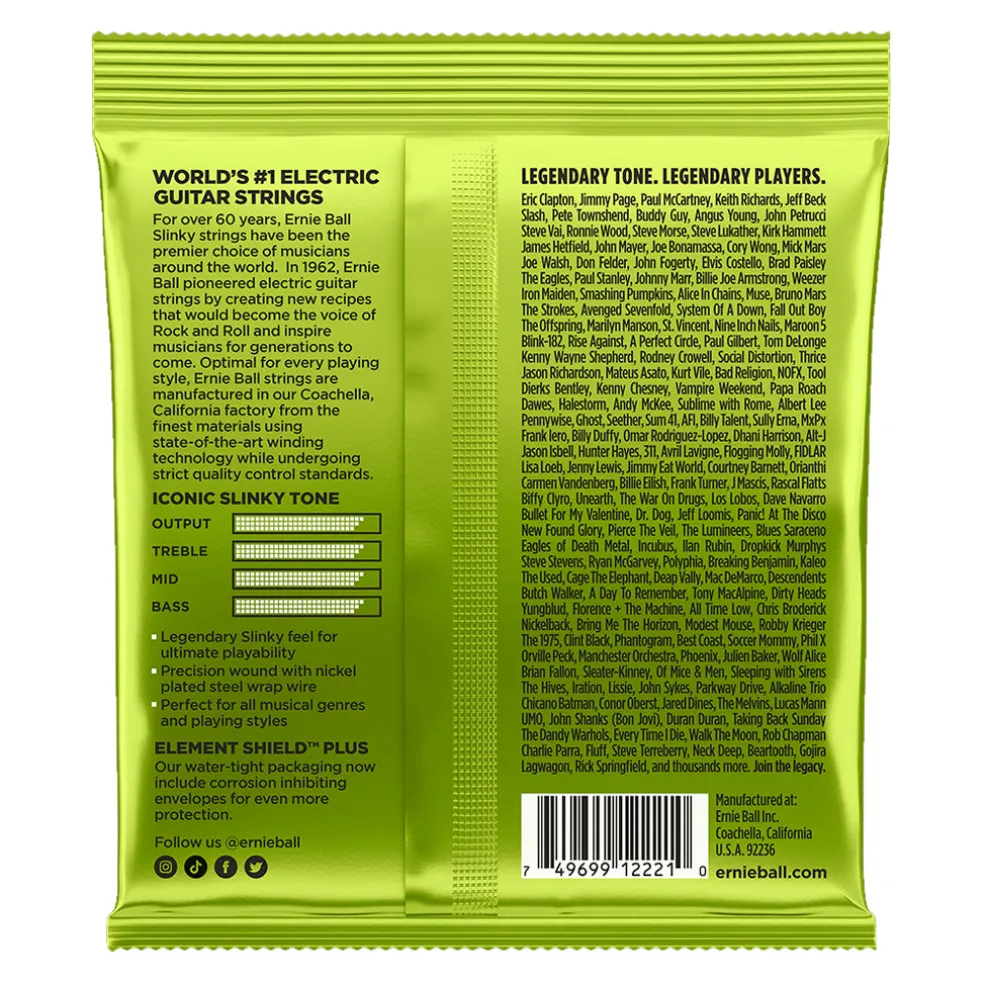 The Ernie Ball Regular Slinky Nickel Wound Electric Guitar Strings are made from nickel plated steel wire wrapped around tin plated hex shaped steel core wire. The plain strings are made of specially tempered tin plated high carbon steel producing a well-balanced tone for your guitar.