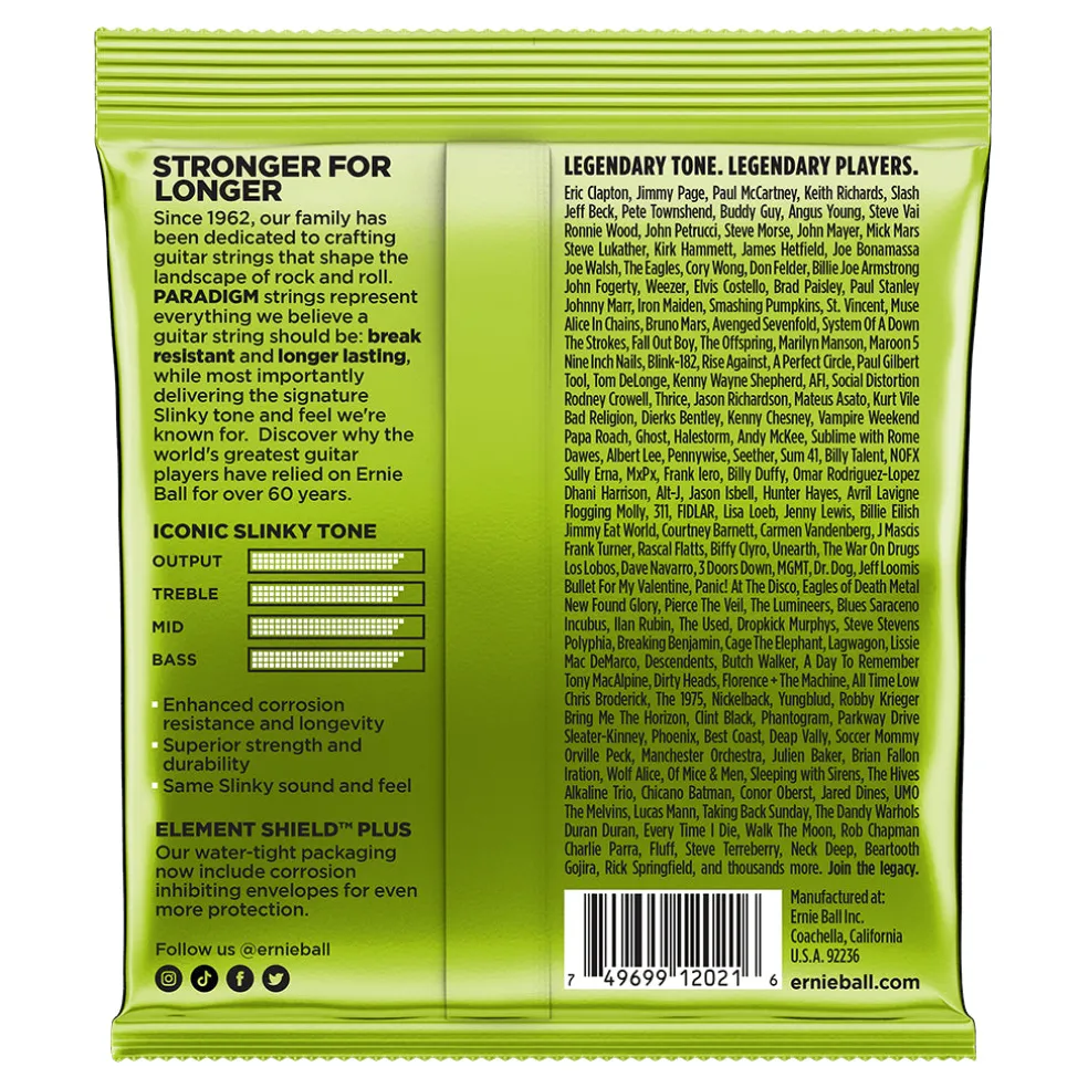 The Ernie Ball Regular Slinky Paradigm Electric Guitar Strings provide unprecedented strength and longer life while retaining 100 percent slinky tone and feel. Its plasma enhanced wrap wire provides added corrosion resistance and reduced accumulation of tone-robbing build-up and debris.