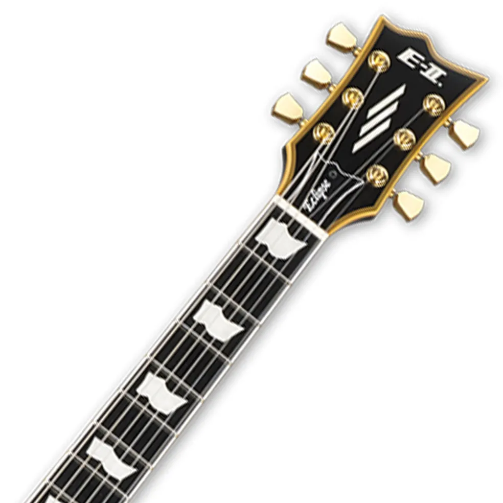The ESP E-II Eclipse DB is inarguably one of the coolest-looking guitars in the entire ESP offering. It starts with a great combination of Vintage Black finish and age-yellowed multi-binding with gold hardware. But the E-II Eclipse DB is more than a killer-looking instrument; it’s also one of our finest-playing guitars. Powered by a set of EMG 60 (neck) and EMG 81 (bridge) pickups, it’s ready for everything from deep and contemplative sounds to the most screaming, aggressive tones imaginable. A set-neck design, it’s easy to get quickly up to the highest frets.