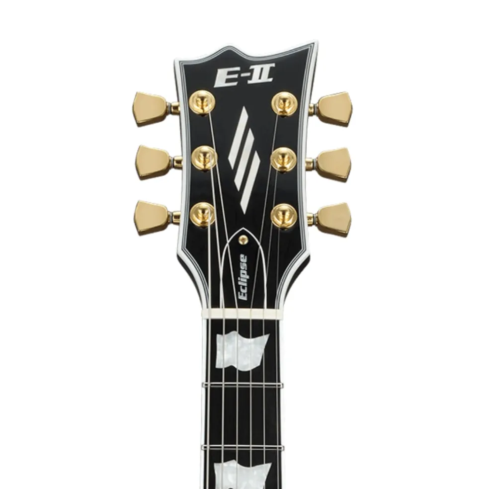 Formerly known as “ESP Standard”, ESP E-II instruments are made in Japan at the ESP factory. The E-II Eclipse Full Thickness EverTune may be the exact guitar you’ve always dreamed of. It starts with a traditional full-thickness body, reminiscent of the most coveted single-cutaway guitars in history. From there, it vaults into the modern era with features like the EverTune constant tension bridge, allowing your guitar to stay in perfect tune, and perfectly intonated at all points up and down the neck. Built at 24.75” scale, it features a set-thru neck for smooth and fast access to the highest frets. Aesthetically, the E-II Eclipse Full Thickness EverTune is one of the finest-looking guitars you’ll ever see, combining a Gloss Black finish with a black/gold hardware theme. Adding to its high-class look is multi-ply binding on the guitar’s body and matching headstock. The E-II Eclipse Full Thickness EverTune offers a mahogany body with maple cap, mahogany neck, and an ebony fingerboard with pearloid ESP flag inlays and 22 extra-jumbo stainless steel frets. The back of the neck is satin finished for the ultimate in smooth playing feel. In addition to the black EverTune bridge with gold saddles, its components include ESP strap locks, gold Gotoh locking tuners with black lock wheels, and a bone nut. It also features a set of Fishman Fluence Classic Humbucker active pickups with multiple voicings that are selectable with a push-push control on the tone knob, delivering everything from vintage “PAF” tones to beefy overwound midrange and tight, articulate lows. Includes ESP deluxe hardshell case.