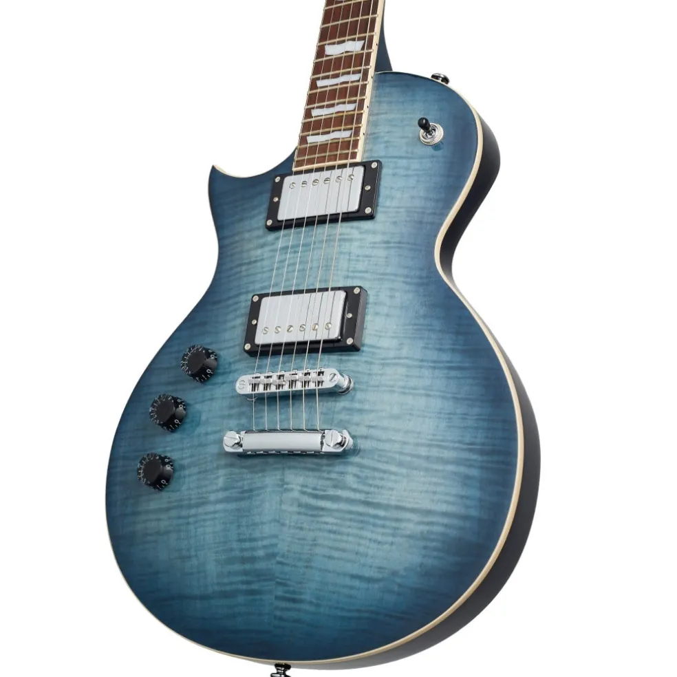 The EC-256FM is the perfect evidence that a great guitar doesn’t have to be prohibitively expensive. A classic shape that’s excellent for all musical styles and genres, the EC-256FM is available in multiple finishes and offers features that you normally associate with high-end guitars, like a flamed maple top, binding on the body, neck, and headstock, and set-neck construction for fast and easy access to the highest frets. The EC-256FM also features a mahogany body, a comfortable three-piece thin U-shaped mahogany neck, and a roasted jatoba fingerboard with inlays and 22 extra-jumbo frets. This guitar features our acclaimed ESP Designed LH-150 humbucking pickups that offer great tone for all genres of music, and the tone flexibility of coil-splitting controlled by a push-pull switch on the tone knob.