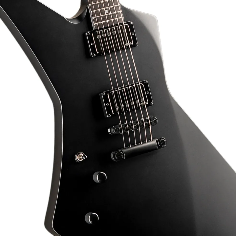 The LTD Snakebyte is a Signature Series model of James Hetfield, the frontman of Metallica and one of the world’s most highly respected rhythm guitar players in any genre. The Snakebyte was created based on James’ own original design. It features set-neck construction at 24.75″ scale, with a mahogany body and a three-piece mahogany neck with ebony fingerboard and 22 extra-jumbo frets with a snake inlay at the 12th fret. The LTD Snakebyte is powered by James’ own EMG JH SET active pickups, and includes a TonePros locking TOM bridge and tailpiece.