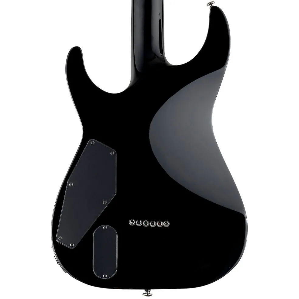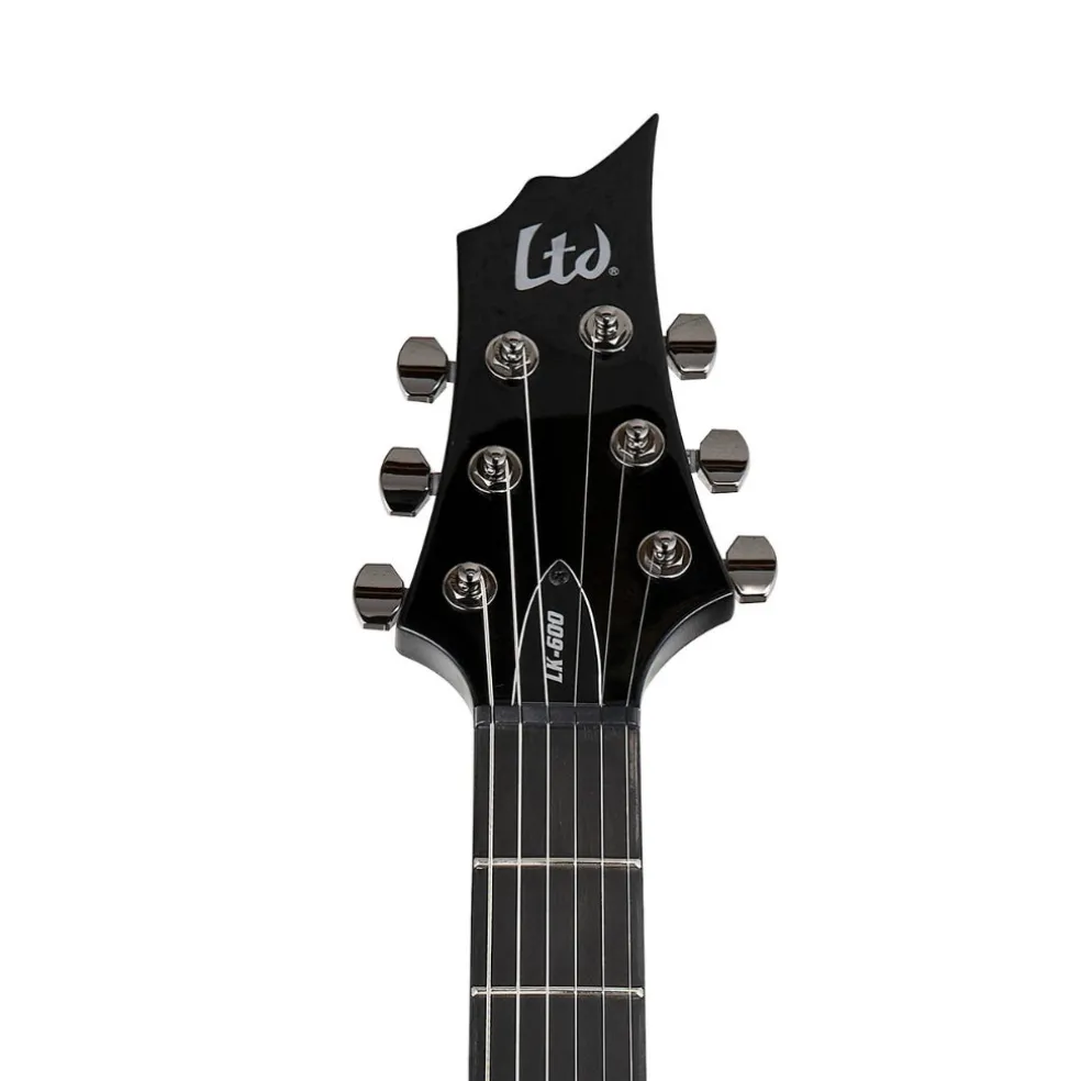 The LTD LK-600 is the Signature Series guitar of Luke Kilpatrick, guitarist for Australian metalcore sensations Parkway Drive. Based on the ESP Horizon shape, the LK-600 is a neck-through-body monster that’s ready for your most brutal and intense performances. It has a mahogany body with a maple cap for excellent sustain and articulation, along with a stable and fast thin U-shaped three-piece maple neck with Macassar ebony fingerboard (adorned with the Parkway Drive symbol at the 12th fret) and 24 extra-jumbo frets. Components on the LK-600 include the excellent combination of EMG 60 (neck) and EMG 81 (bridge) pickups with brushed black chrome covers, offering versatile tones for both pounding rhythms and aggressive leads. This guitar also provides a TonePros locking TOM bridge with string-thru-body design and LTD locking tuners. Available in Black finish with Black Nickel hardware.