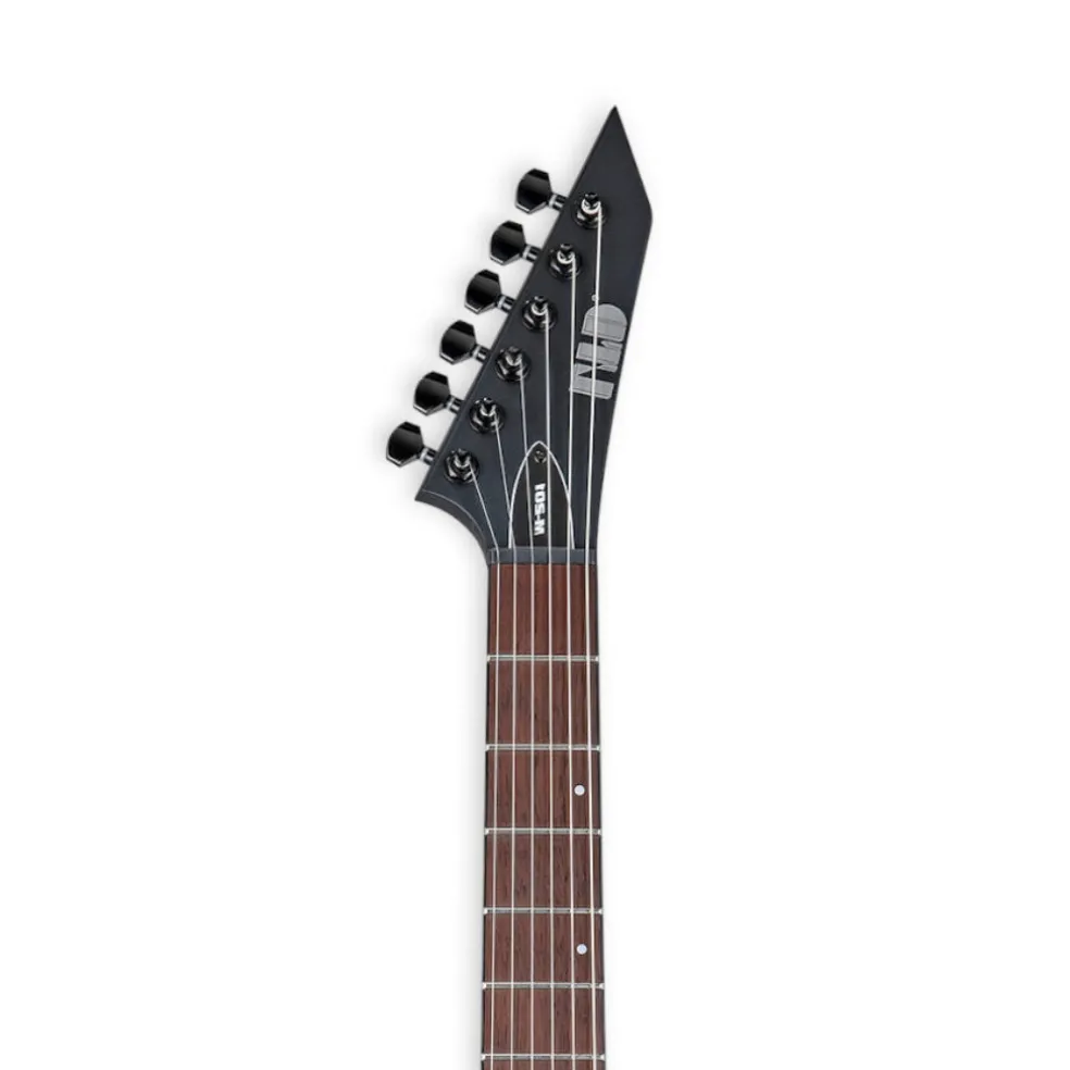 The LTD M-201 allows you to get a guitar designed for serious performances without spending serious money. Based on the classic ESP M (Mirage) shape, the M-201 offers the speedy feel and great bolt-on tone as many other guitars in the LTD M Series, with a mahogany body and comfortable extra-thin U-shaped three-piece maple neck. Its roasted jatoba fingerboard has black binding, offset dot inlays and 24 extra-jumbo frets.