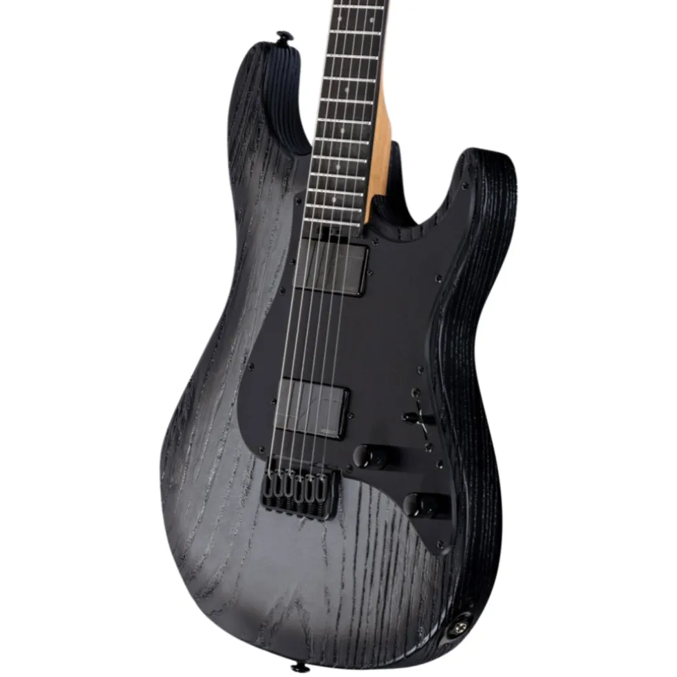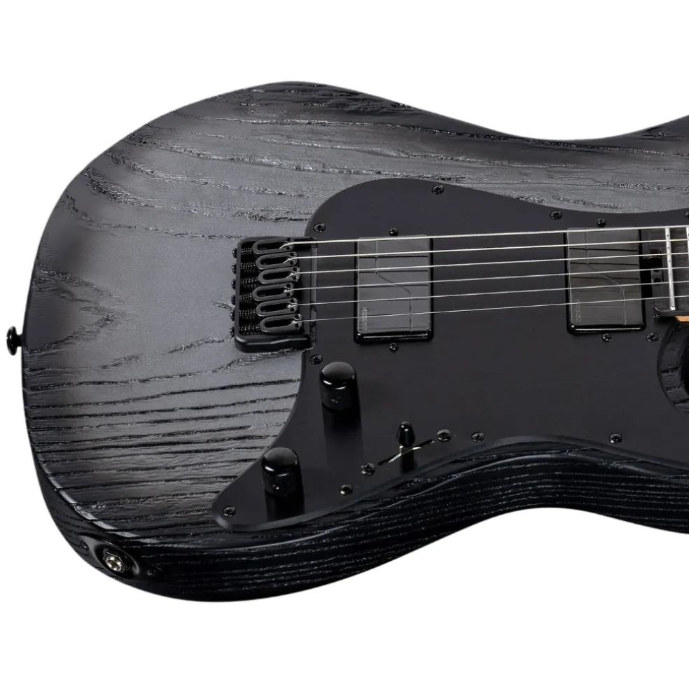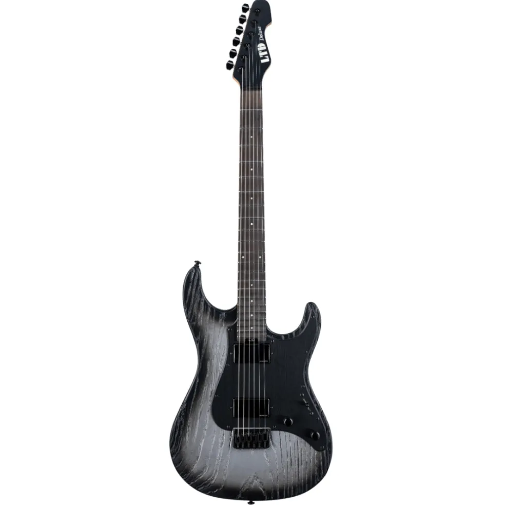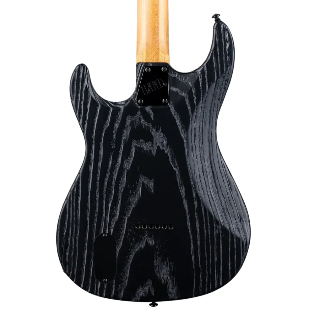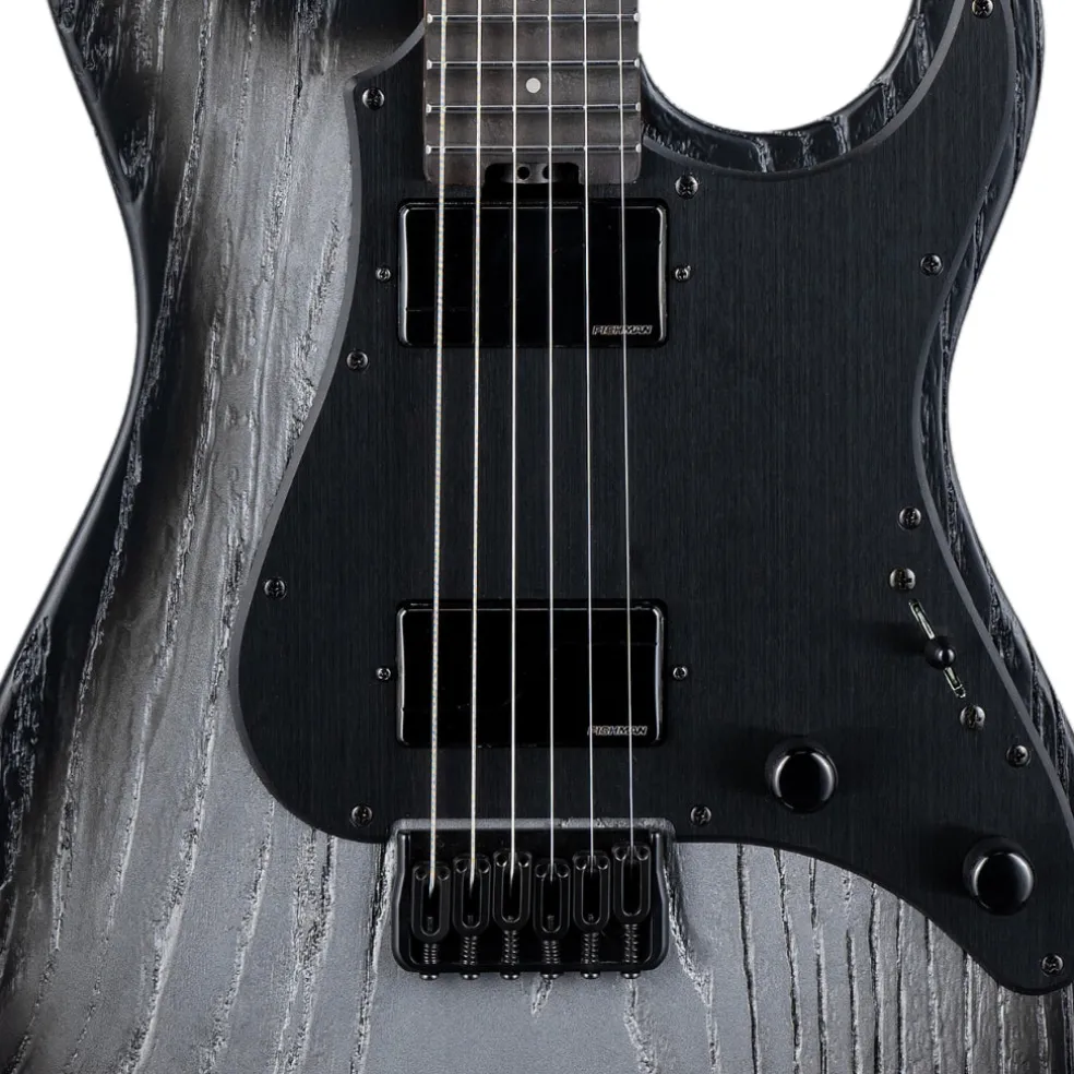 The SN-1000HT Silver Blast features a striking sandblasted finish over a swamp ash body, delivering both unique aesthetics and resonant tone. Built with bolt-on construction at a 25.5” scale, it offers a comfortable playing experience, perfect for various musical styles. The roasted maple neck enhances stability and adds a smooth feel for fast playing.