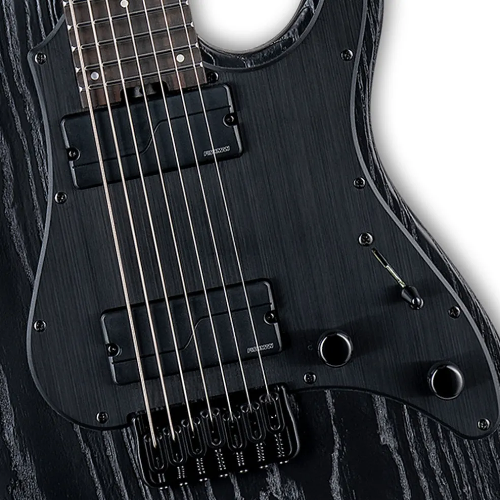 Guitars in the LTD 1000 Series are designed to offer the tone, feel, looks, and quality that working professional musicians need in an instrument. With seven strings and a 27” baritone scale, the SN-1007HT Baritone is their first extended scale guitar in the SN Series. This guitar is ready to explore the depths of modern metal while looking as cool as it sounds with a sandblasted Black Blast finish on its swamp ash body.