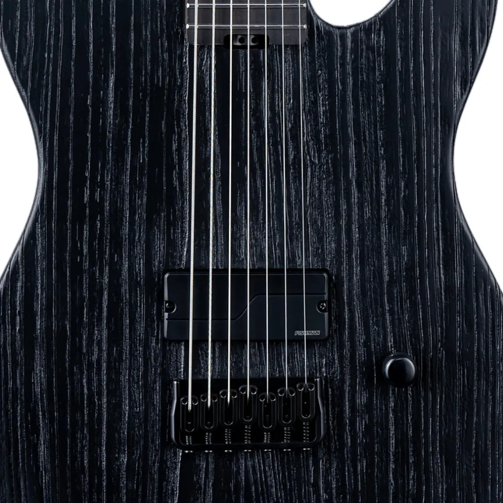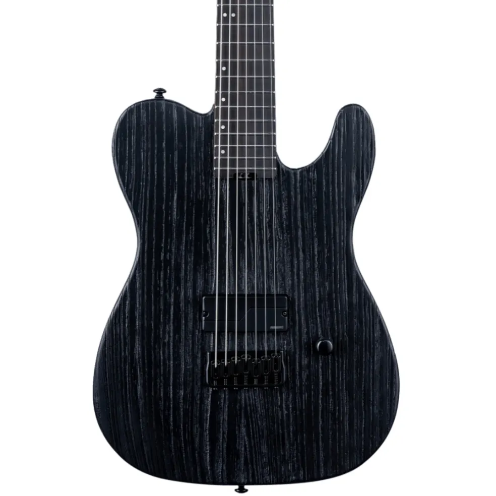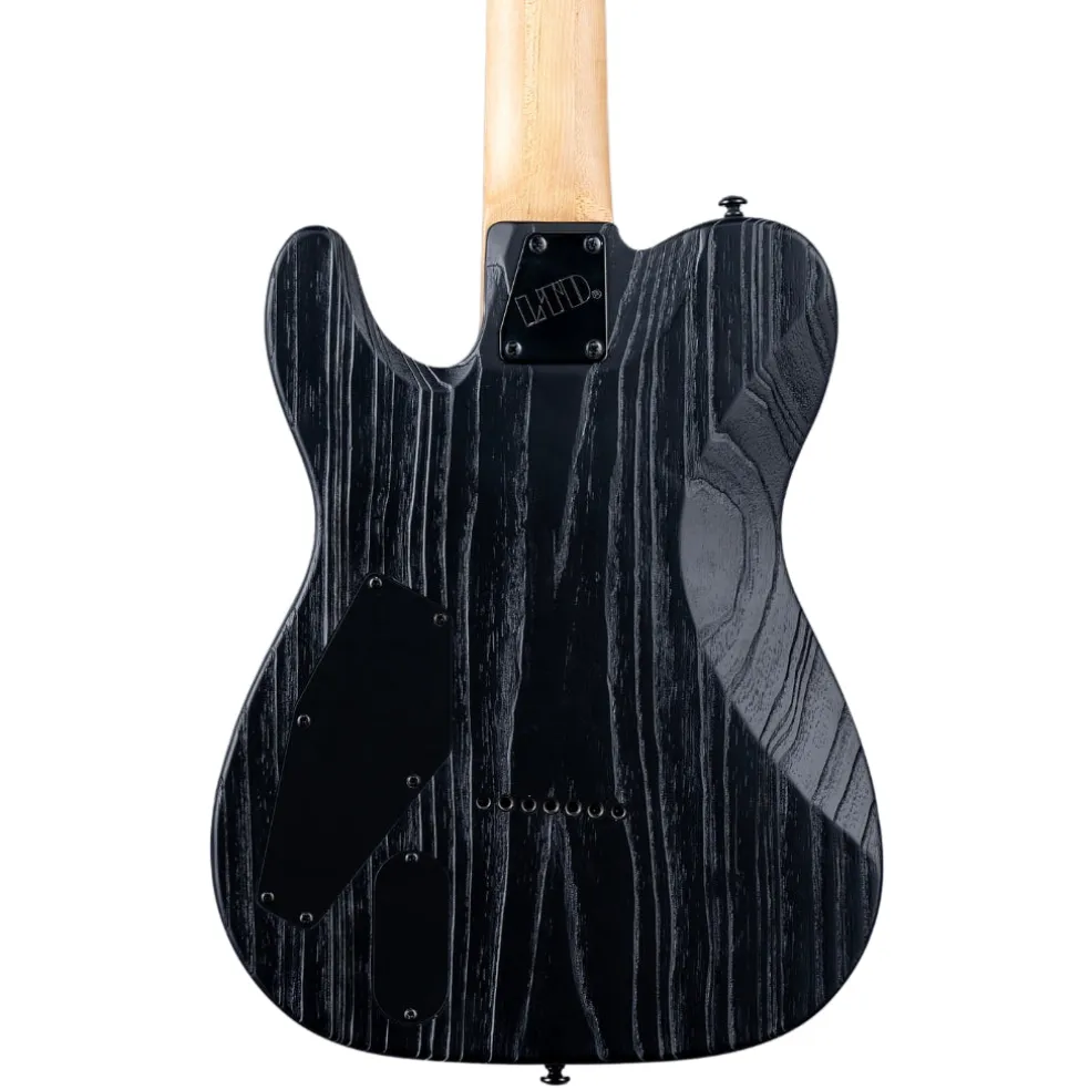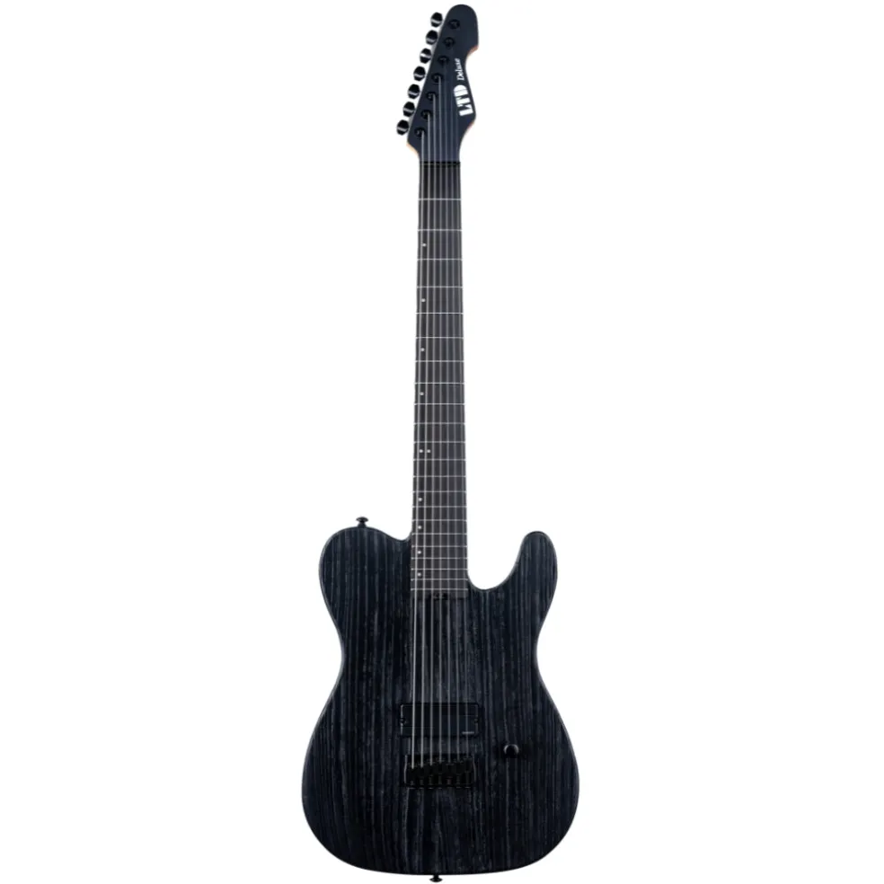 The LTD TE-1007 Baritone, in a sleek Black Blast finish, offers a 7-string, 27” baritone design, making it perfect for extended range and down-tuned playing. Its sandblasted swamp ash body provides a striking textured look and delivers resonant, balanced tones.