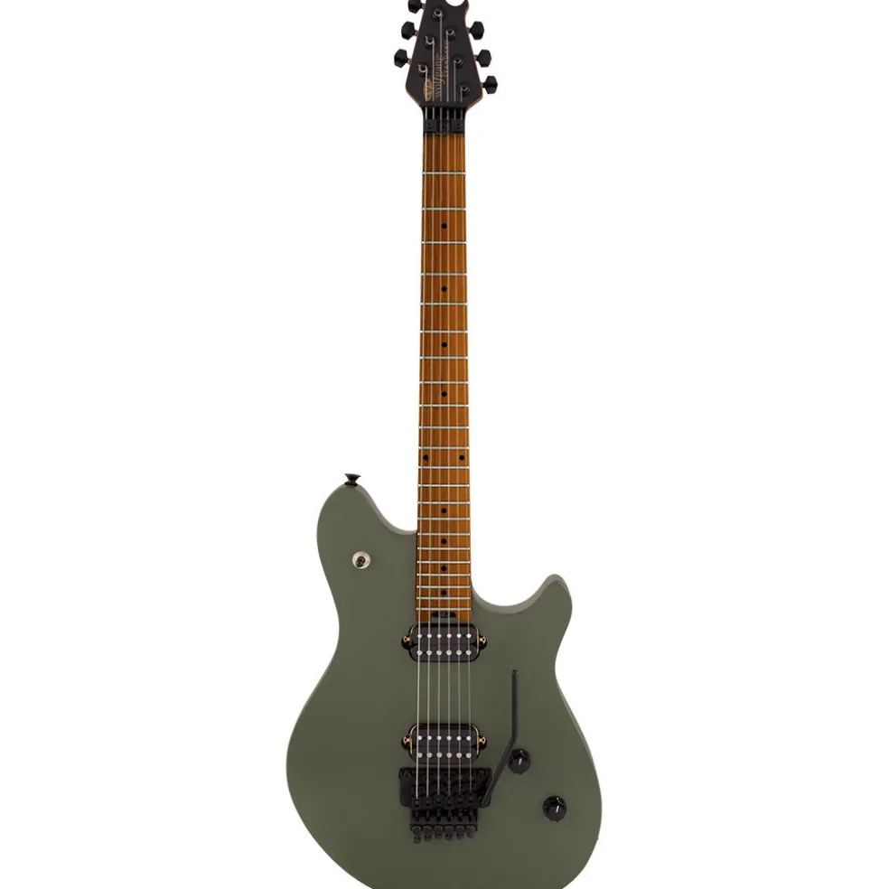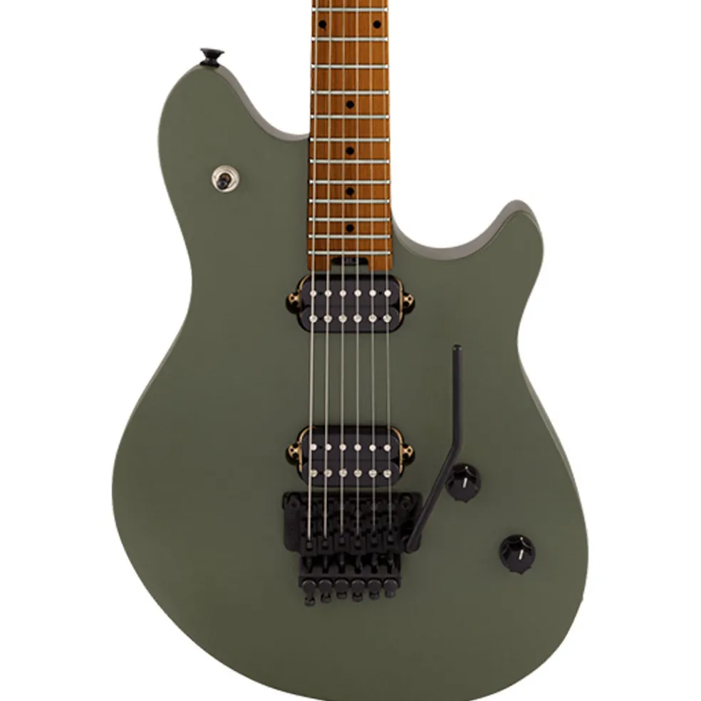 Dual EVH® Wolfgang humbucking pickups mounted directly to the body increase vibration transfer, resulting in sustain for days on end. The black knurled tone and volume control knobs have been have been dialed-in to Van Halen’s exacting specifications—the smooth-feeling 500k pots make it easy to find a unique sound while retaining the crisp high-end sparkle of the Wolfgang pickups. The EVH-branded Floyd Rose® Special bridge and R2 locking nut consistently keep the guitar in tune through the deepest whammy dives and horse whinnies.