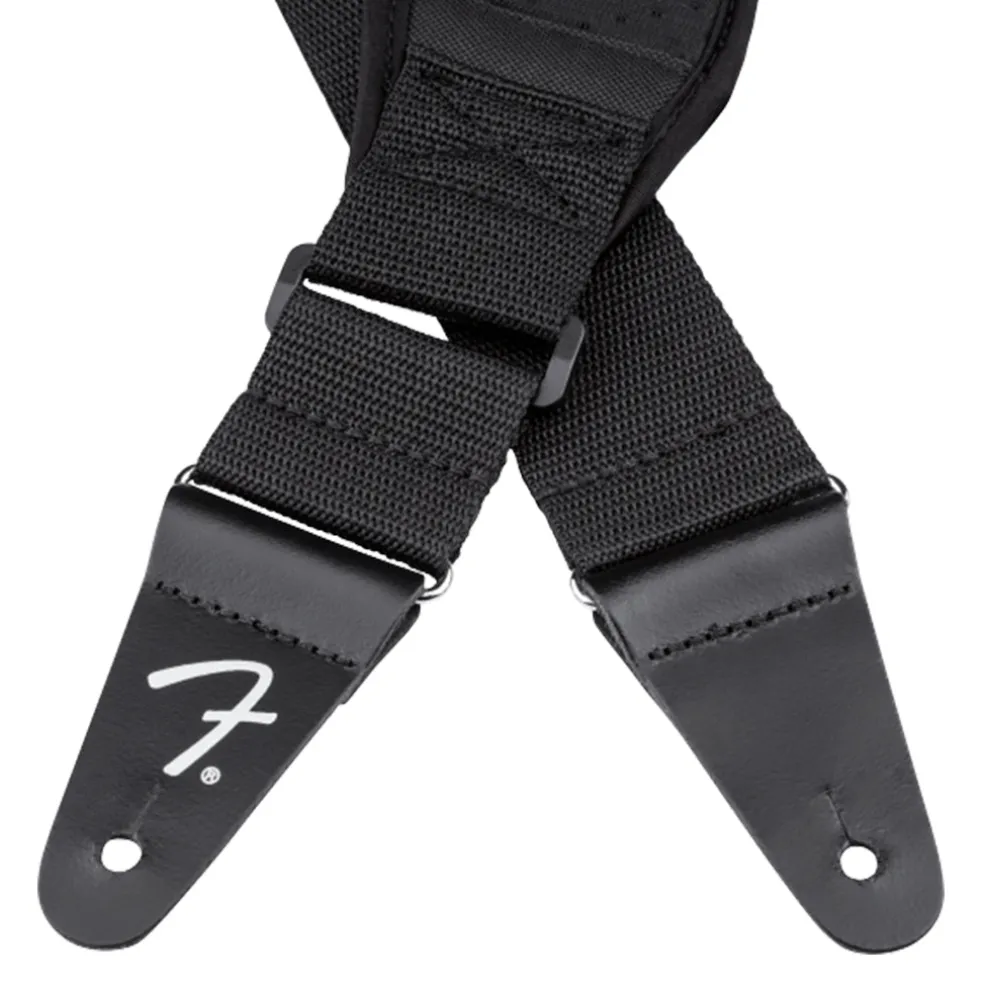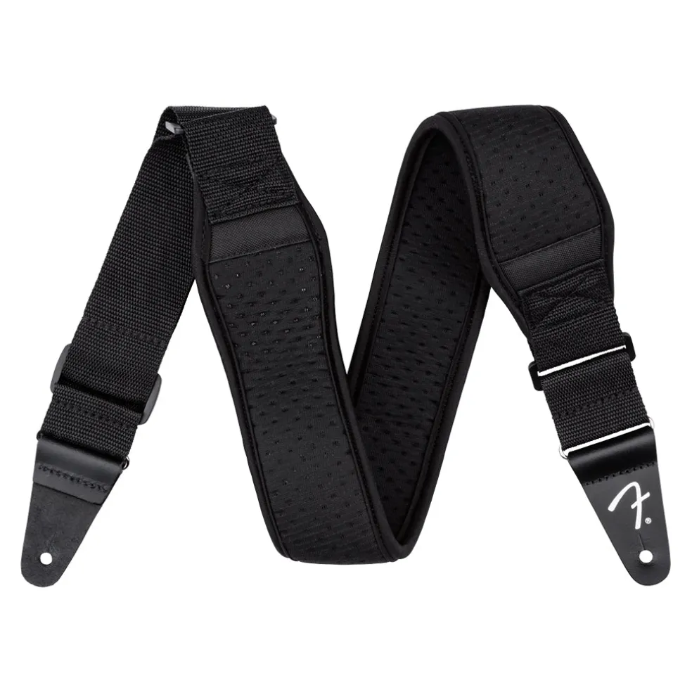 Designed for maximum comfort, the FenderĀ® Neoprene Strap is perfect for enduring long practices and performances. The large neoprene pad alleviates weight off your back and shoulders while providing heat relief through its mesh construction. Extra reinforced pads on the end tabs ensure long-lasting durability for use with heavier instruments.