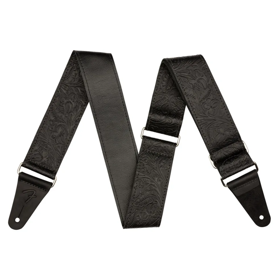 Inspired by the highly decorated straps favored by Western swing and country players, the Fender Tooled Leather Strap brings classic style to any performance. Featuring an attractive floral pattern, this 2â-wide strap is designed for comfort, quality and aesthetics. The premium leather cone ends feature an embossed âFâ logo to maintain the theme. The silver nickel slider allows the strap to adjust from 42â-52â in length to accommodate players of any stature.