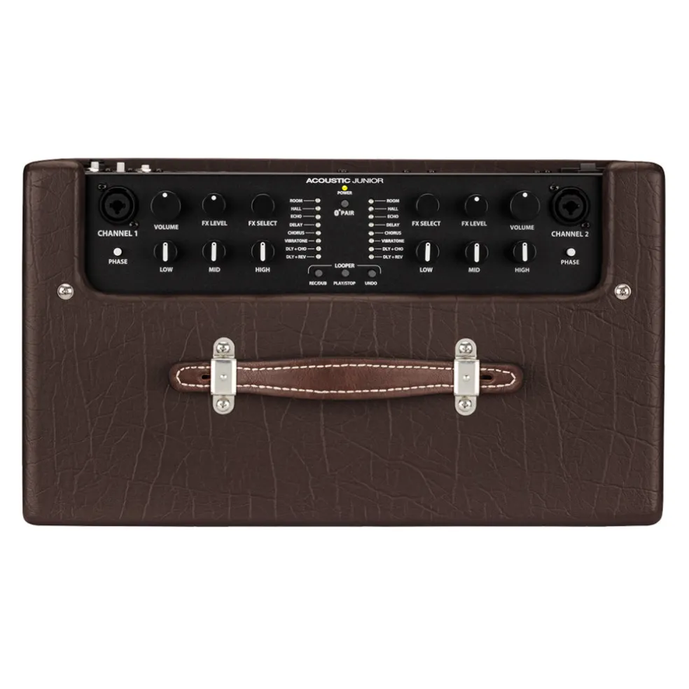 The Fender Acoustic Junior amplifier delivers full, natural, best-in-class performance for acoustic-electric guitar and vocals. This powerful, portable system has two channels designed for instrument or microphone use, each with studio-quality effects. Other convenient features include Bluetooth wireless audio streaming, an onboard 90-second looper perfect for solo shows, and more.