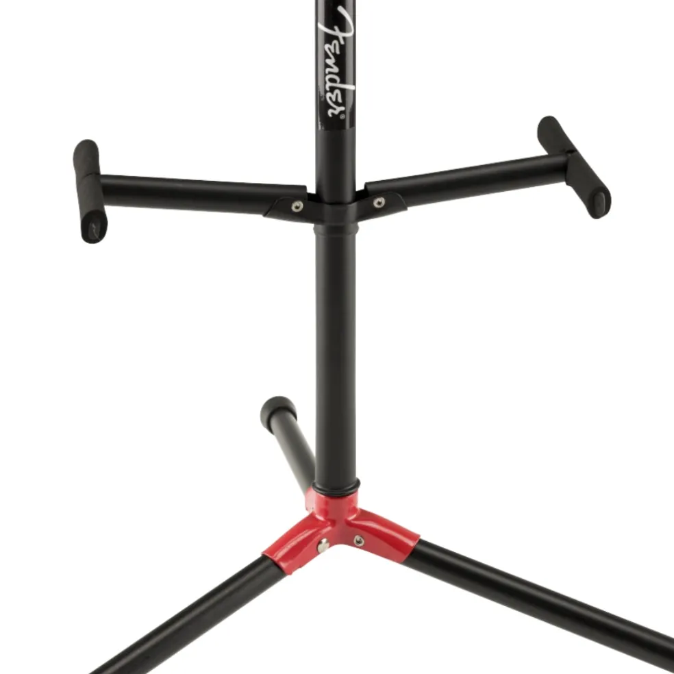 Fender’s Adjustable Hanging Guitar Stand conveniently showcases your acoustic, electric or bass guitar. The height-adjustable neck yoke comfortably accepts various instrument sizes while the lower support swivels to accommodate standard and offset body styles. This stand’s metal construction is durable enough for road use, and padded yokes offer security while in use. Perfect for the musician on the go, this stand is easily collapsible for convenient transport.