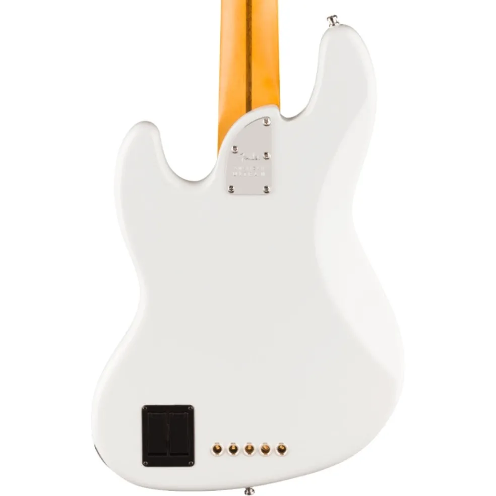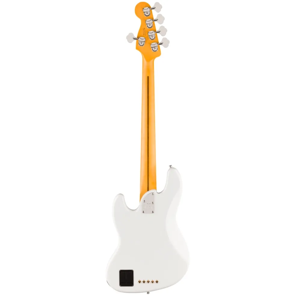 The FenderĀ® American Ultra II Jazz BassĀ® V features a select alder body with sculpted body contours. For effortless playability, the quartersawn maple neck features our Modern D profile and smooth Ultra Satin finish. Ebony or quartersawn maple 10ā-14ā compound radius fingerboards feature Ultra rolled edges, medium-jumbo frets, LuminlayĀ® side dots and Graph TechĀ® TUSQĀ® nuts. The tapered neck heel and sculpted body contours allow unparalleled access to the higher register, while the truss rod access at the headstock provides convenient and easy setup and adjustment.