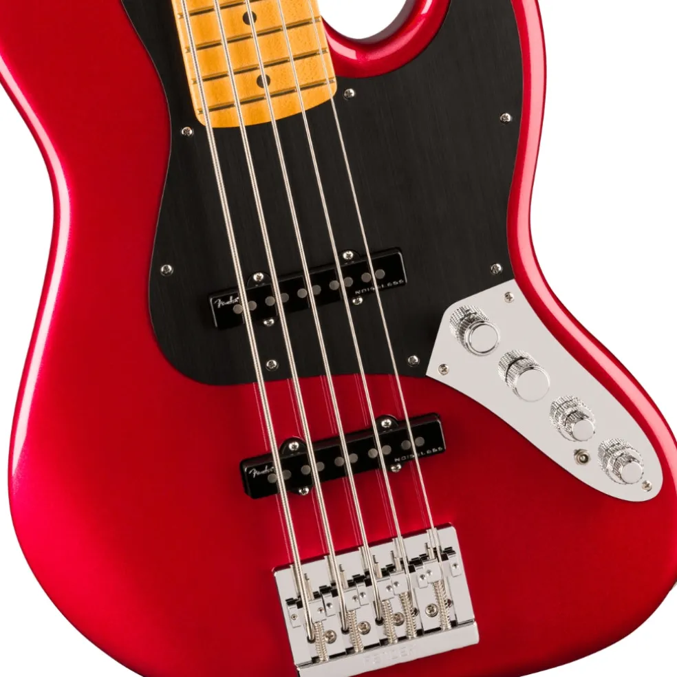 Outfitted with a set of specially designed Ultra II Noiseless⢠Vintage Jazz Bass pickups, this bass delivers a massive tonal range, from vintage warmth to modern snap, all without a hint of hum. The redesigned preamp features unprecedented control to unlock endless tonal possibilities. Key features include S-1⢠switching for active/passive operation, passive tone control and 3-band active EQ with switchable midrange frequency. Additional road-ready features including an adjustable HiMass⢠top-load or string-through-body bridge, Fender light-weight tuners with tapered shafts, knurled aluminum knobs and 1-ply anodized aluminum pickguard.