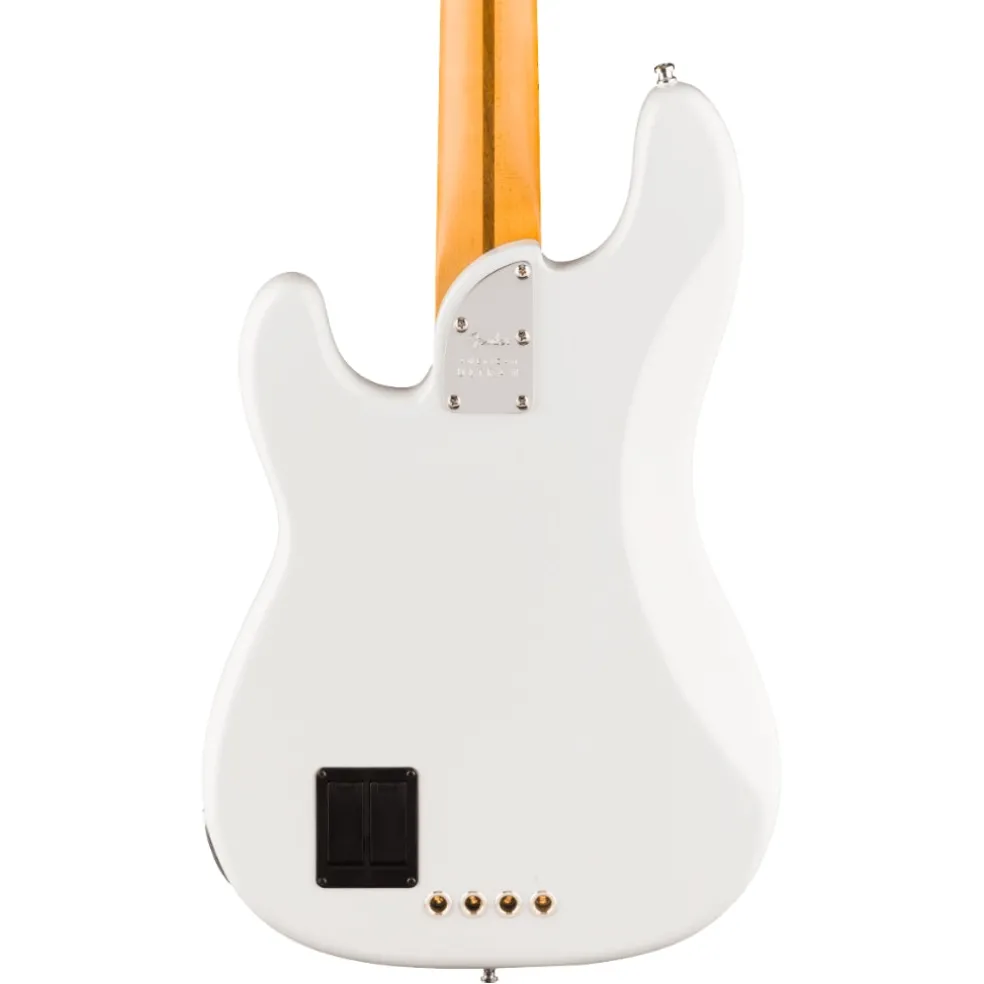 The FenderĀ® American Ultra II Precision BassĀ® features a select alder body with sculpted body contours. For effortless playability, the quartersawn maple neck features our Modern D profile and smooth Ultra Satin finish. Ebony or quartersawn maple 10ā-14ā compound radius fingerboards feature Ultra rolled edges, medium-jumbo frets, LuminlayĀ® side dots and Graph TechĀ® TUSQĀ® nuts. The tapered neck heel and sculpted body contours allow unparalleled access to the higher register, while the truss rod access at the headstock provides convenient and easy setup and adjustment.