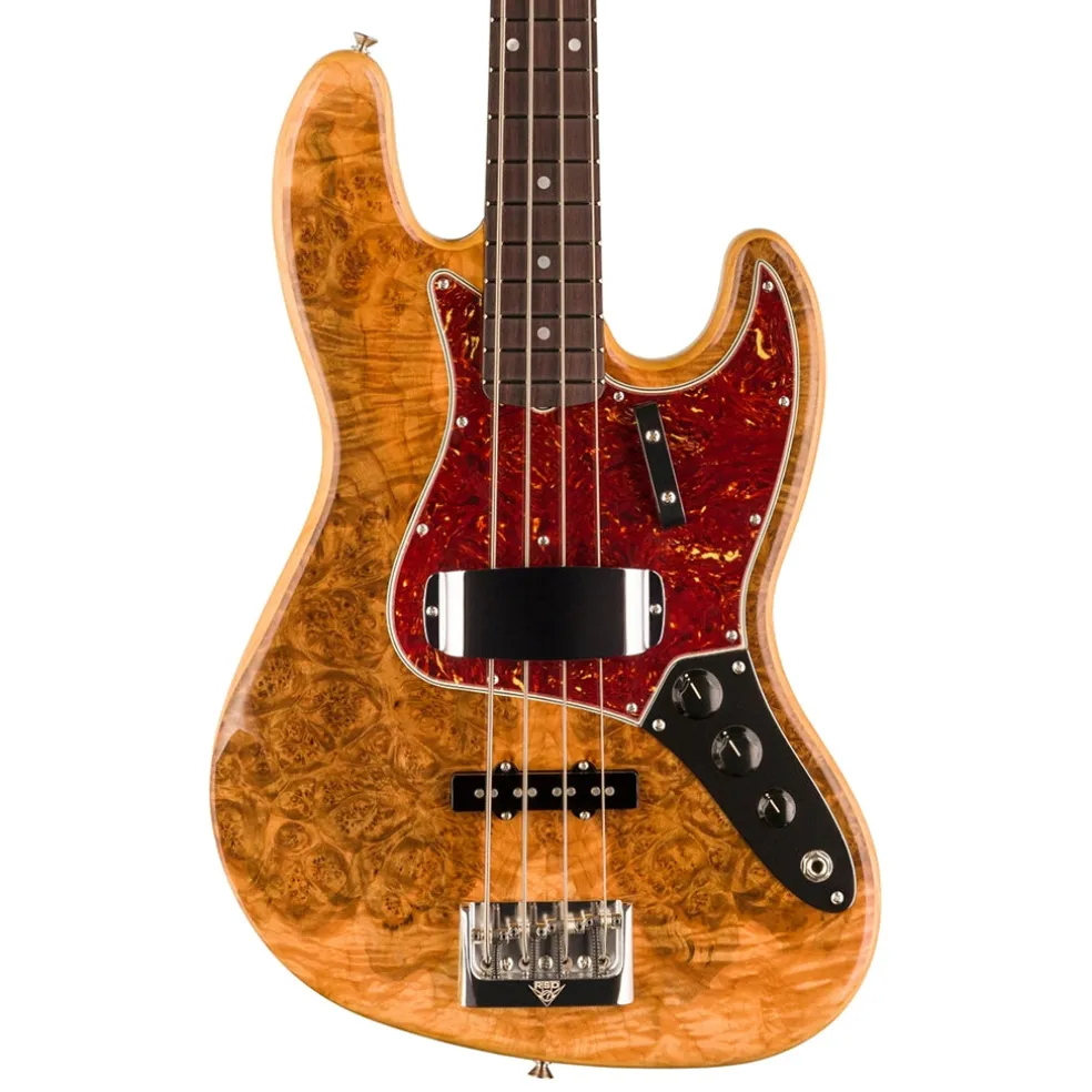 Combining beautify and exotic tone woods, the Artisan Maple Burl Jazz Bass® NOS showcases the high-level craftsmanship of the Fender Custom Shop—seamlessly merging Fender heritage with showstopping appointments. Finished in Aged Natural NOS lacquer, the two-piece select ash body (with offset seam) is paired with an incredible 4A maple burl top, and to round out this perfect union of woods, a 3A roasted flame maple neck is topped with a round-laminated rosewood fingerboard.